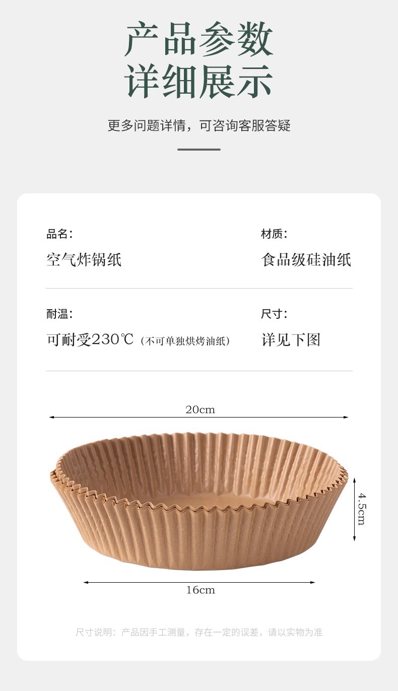 에어 프라이어 특수 종이 베이킹 팬 오일 흡수 종이 패드 종이 가정용 식품 실리콘 오일 종이 주석 종이 그릇 베이킹 냄비 전기 튀김스토어 가기