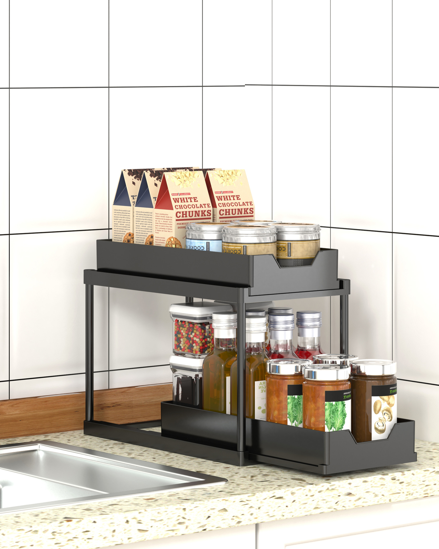 TEMU Amazon Double-layer Pull-out 스토리지 랙 스토리지 랙 싱크 스토리지 랙 주방 데스크톱에서 스토리지 랙 구성