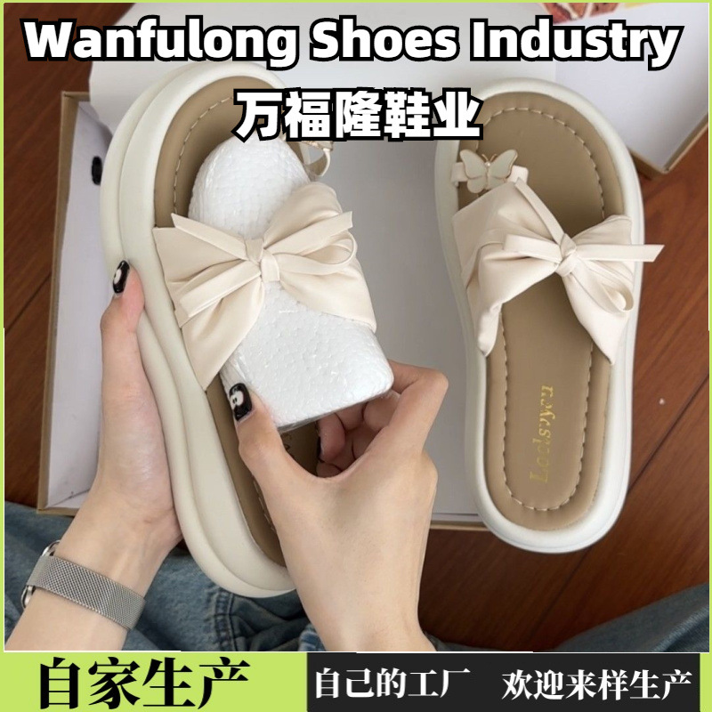 아름다운 샌들과 슬리퍼 여성 여름 착용 2024 새로운 틈새 하이 엔드 활 세트 발가락 프랑스 플랫폼 슬립 플롭스토어 가기