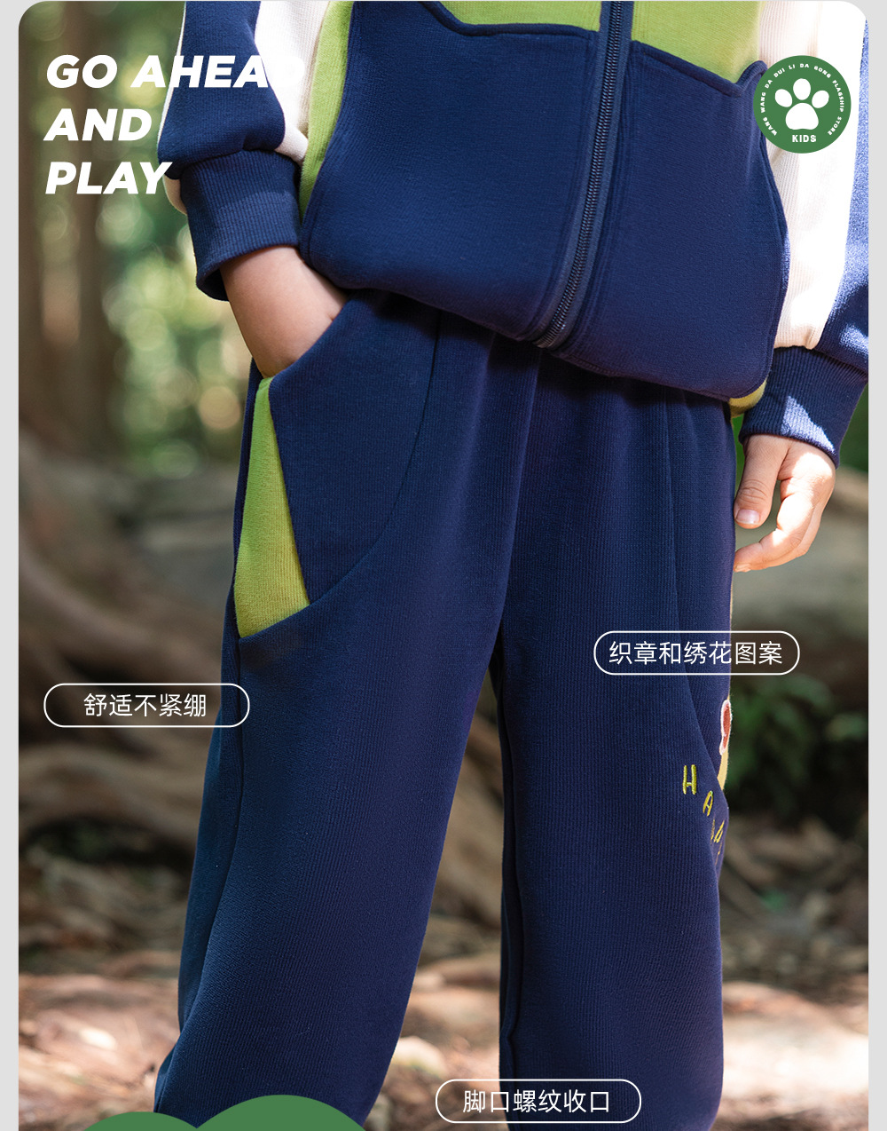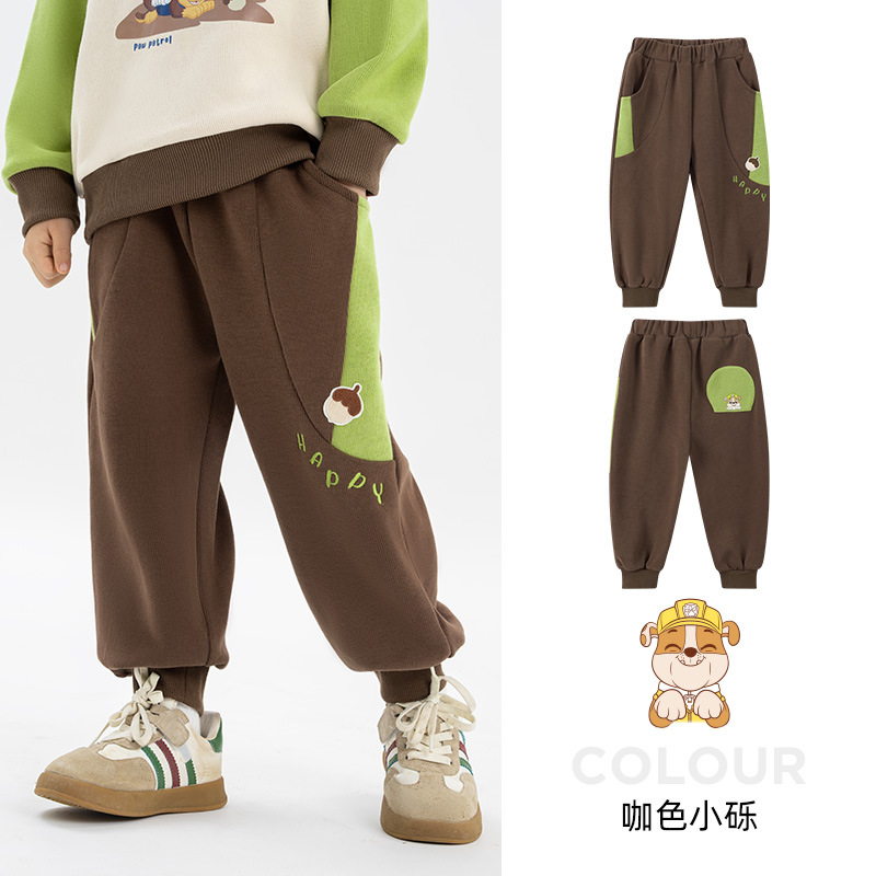 왕왕 팀 어린이 바지 봄과 가을 운동복 2024 새로운 느슨한 캐주얼 스포츠 잘 생긴 가을 바지