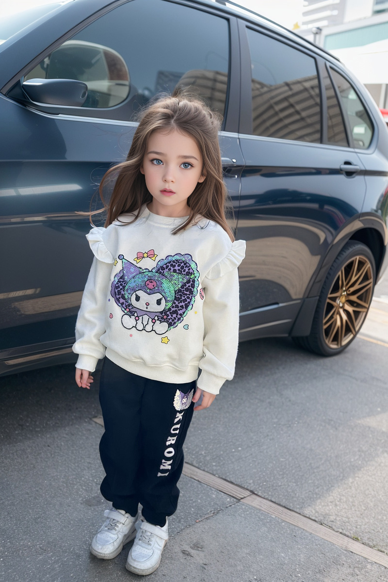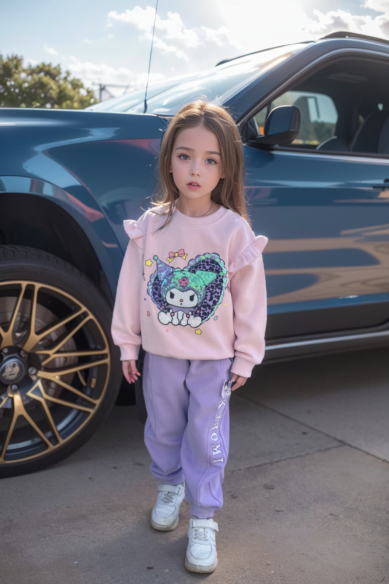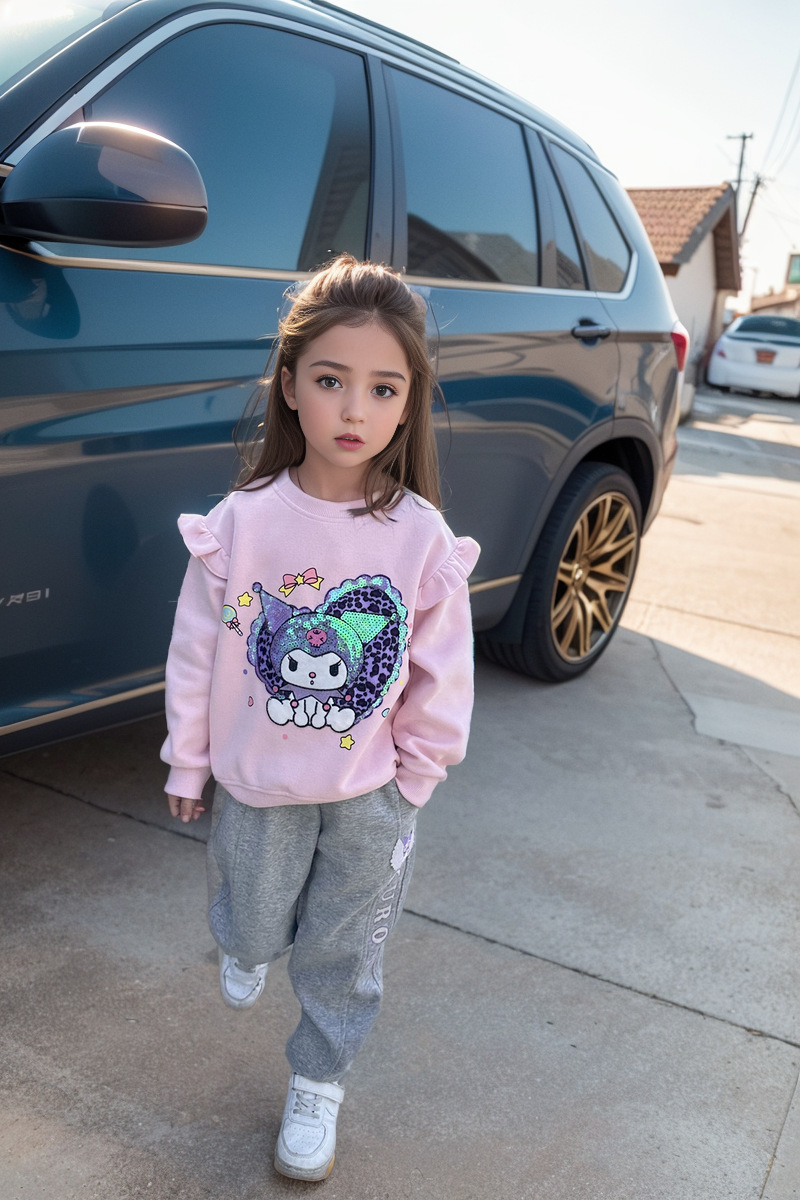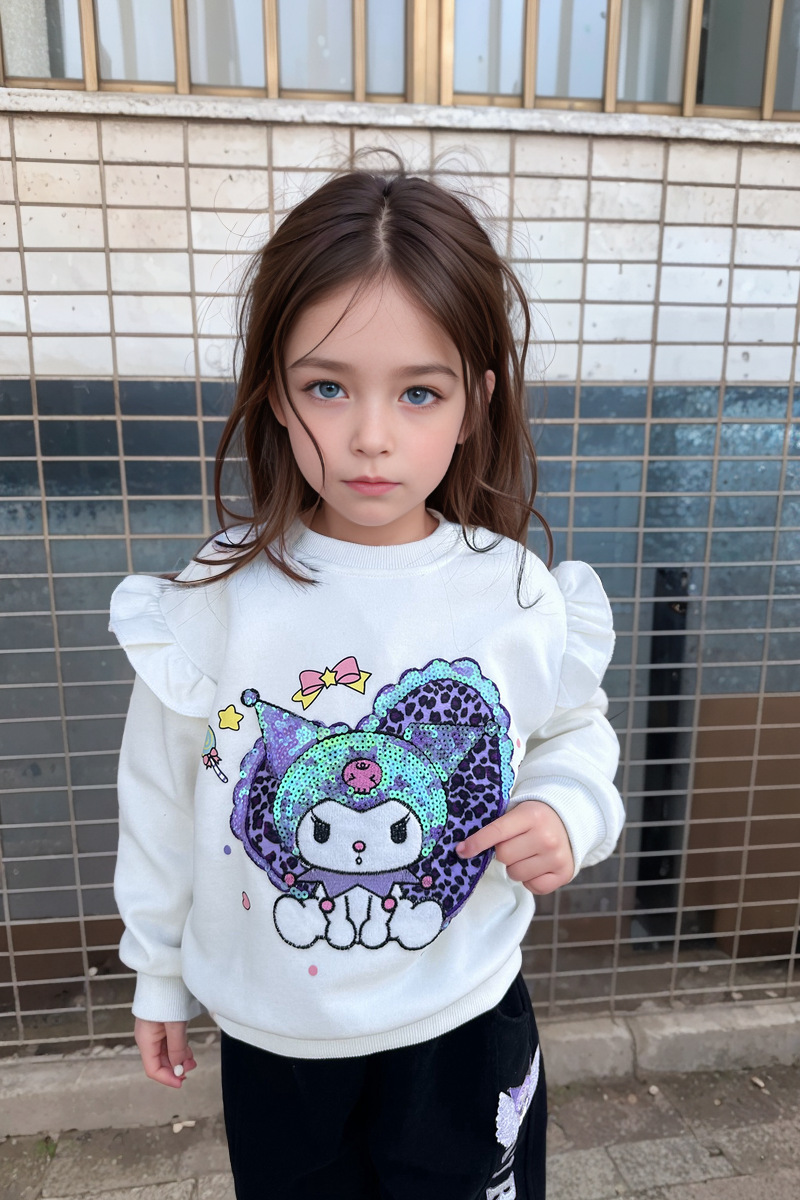 소녀 스웨터 봄과 가을 아동복 2024 새로운 스타일 중대형 어린이 스웨터 만화 탑 라운드 넥 풀오버 어린이 스웨터