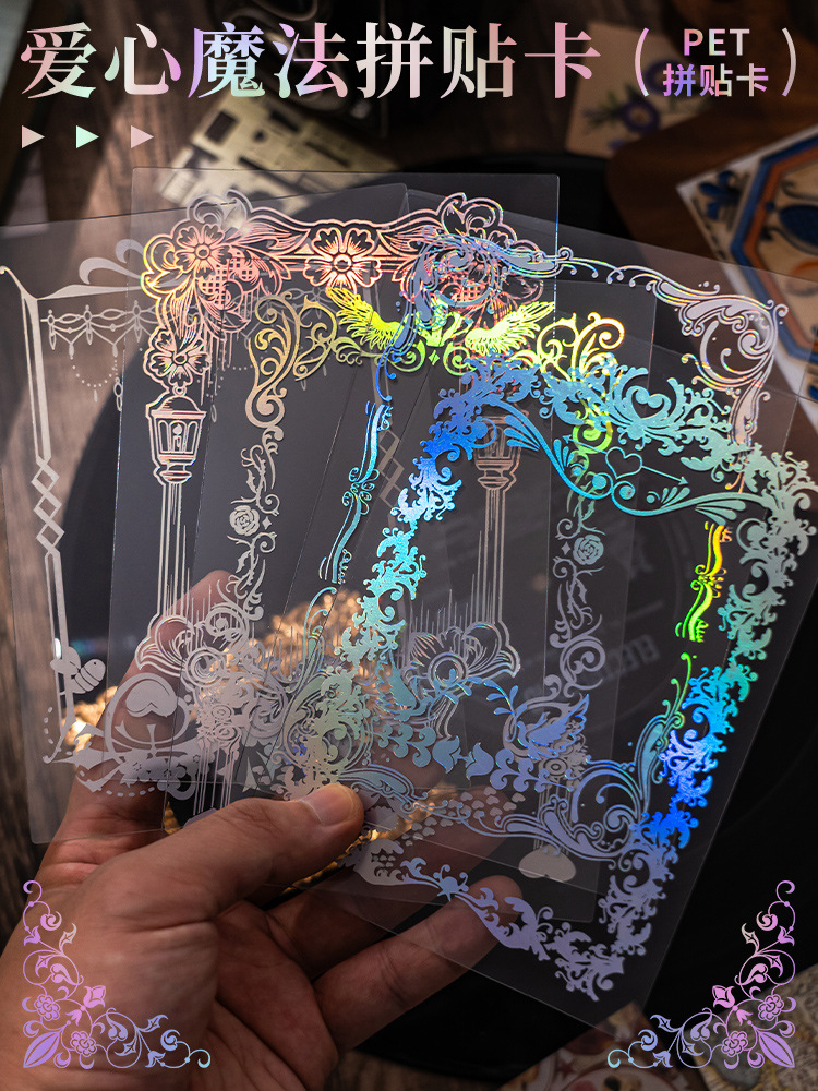 꿈과시 PVC 무지개 뜨거운 실버 소재 가방 유럽 스타일 테두리 손 계정 사진 장식 투명 카드 콜라주