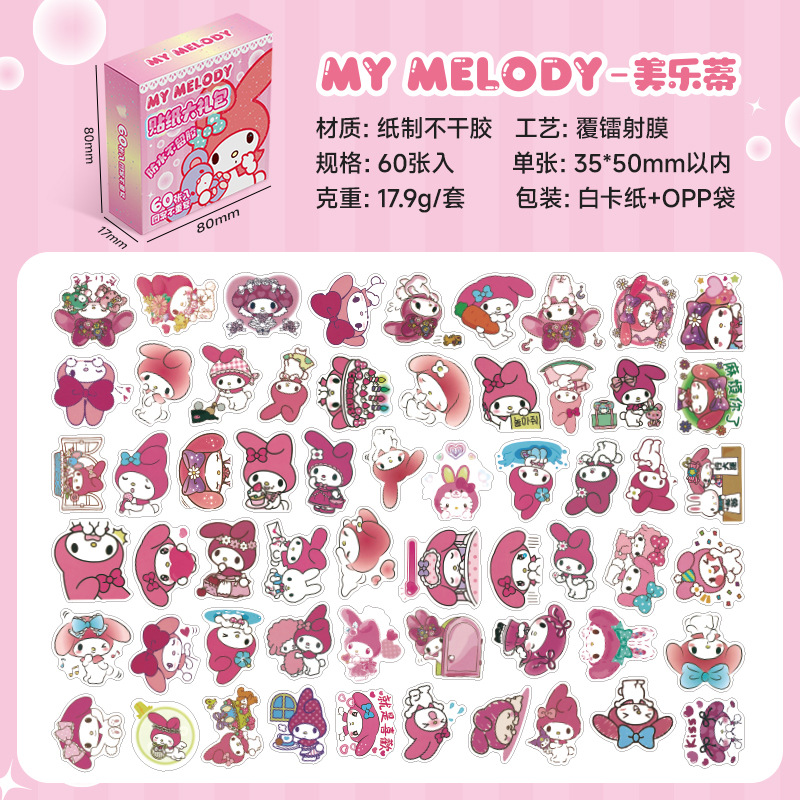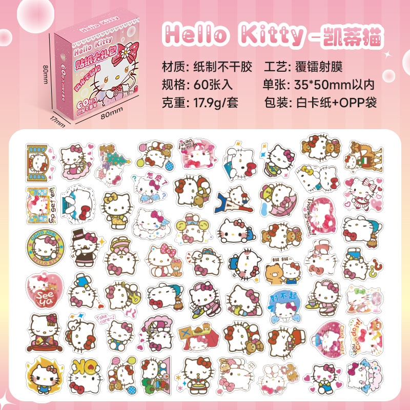 Sanrio 레이저 박스 종이 스티커 Kulomi 소녀의 손 계정 어린이 귀여운 만화 애니메이션 60 박스