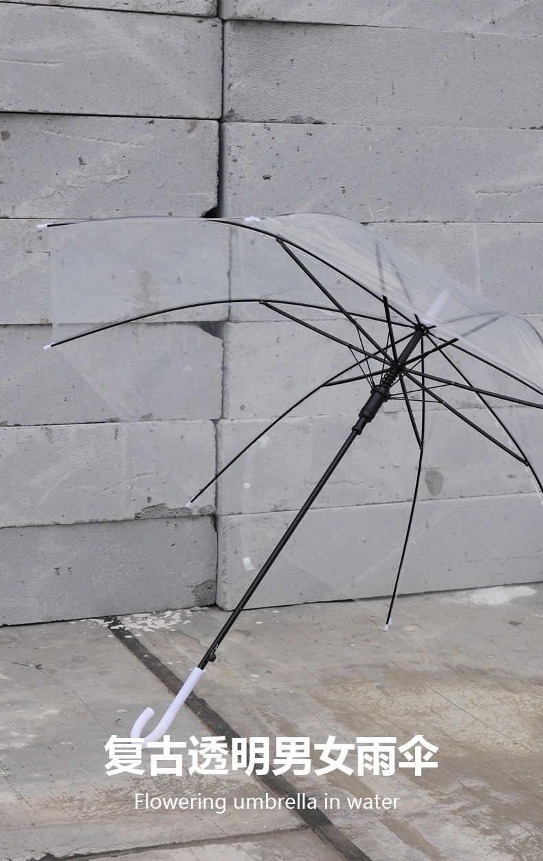 도매 8 뼈 투명 플라스틱 우산 여성 높은 감각 긴 손잡이 자동 우산 증가 태양 우산 맞춤형 로고스토어 가기