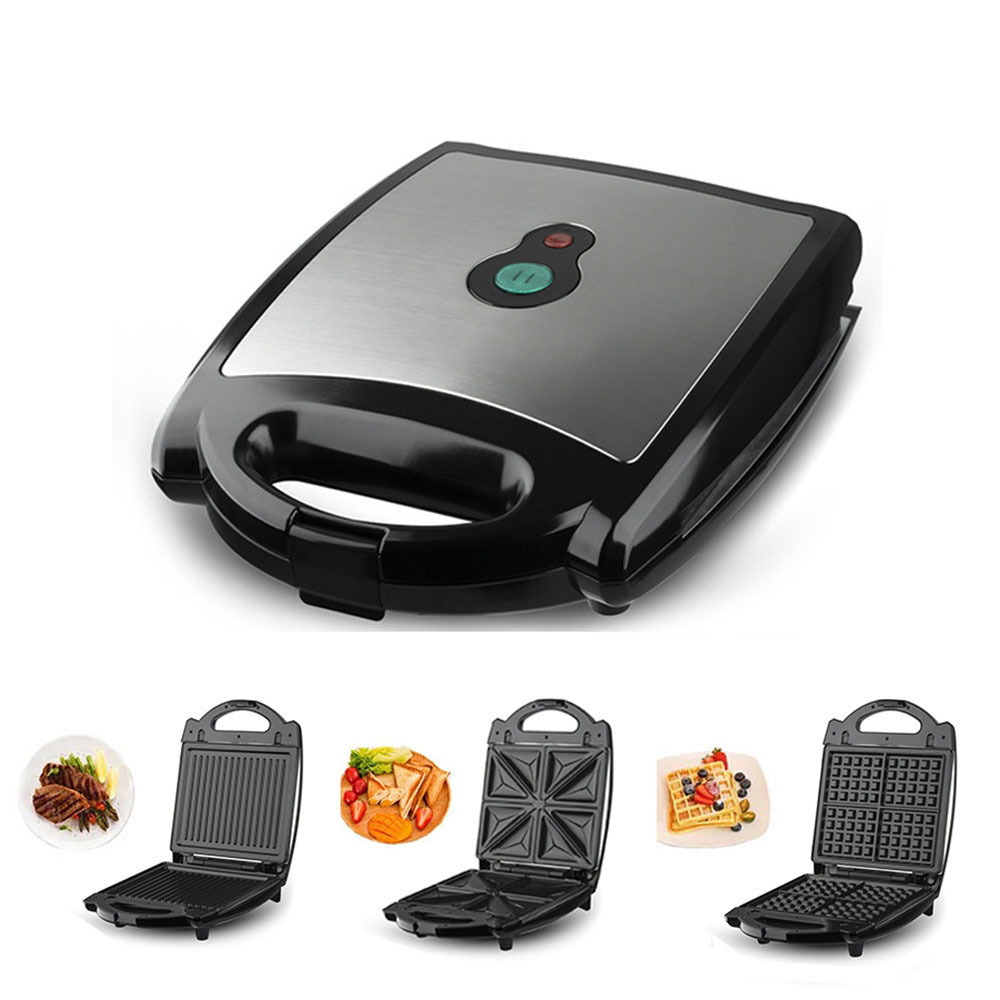 다기능 아침 식사 기계 3in1 와플 기계 양면 난방 전기 케이크 팬 샌드위치 스테이크 기계 빵 기계