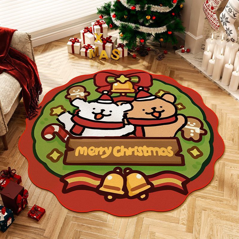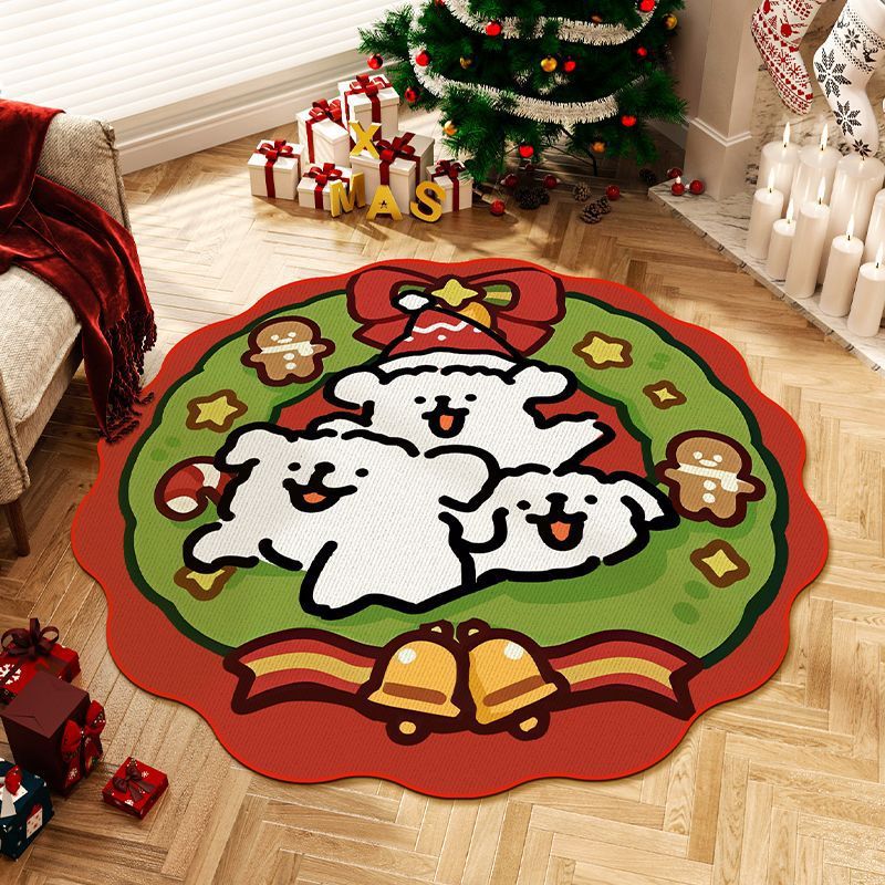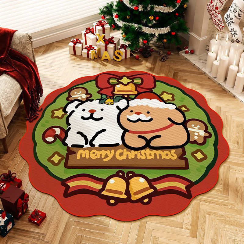 라인 강아지 크리스탈 벨벳 카펫 크리스마스 스타일 바닥 매트 흡수성 미끄럼 방지 관리 용이 티 테이블 매트 소파 매트 전체 커버스토어 가기