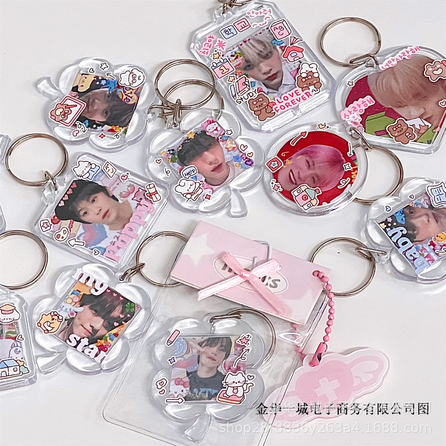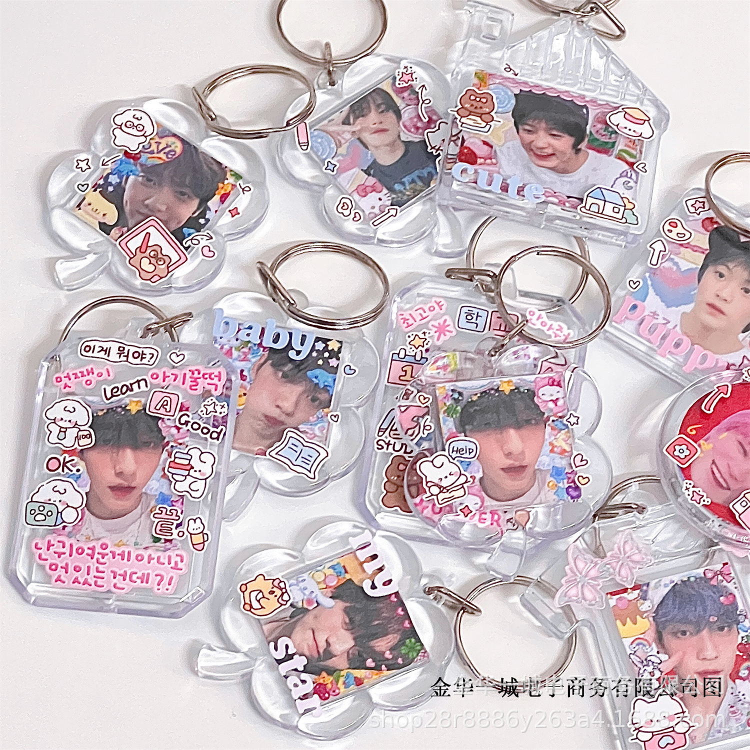 Ins 아크릴 주변 투명 키 체인 교수형 장식품 사진 DIY 선물 펜던트 교수형 체인은 구슬 키 체인을 도와야합니다스토어 가기