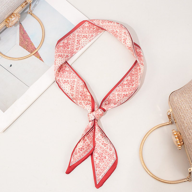 모조 실크 롱 스카프 여름 인터넷 인기있는 작은 샤넬 스타일 양면 웨이브 닷 타이 스카프 가방 스퀘어 스카프 고급 센스 리본