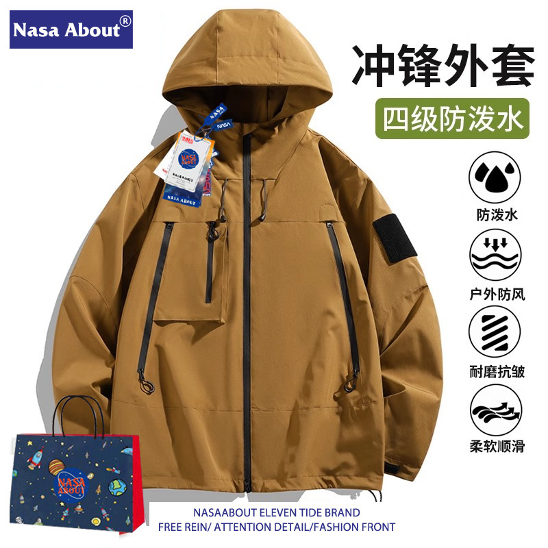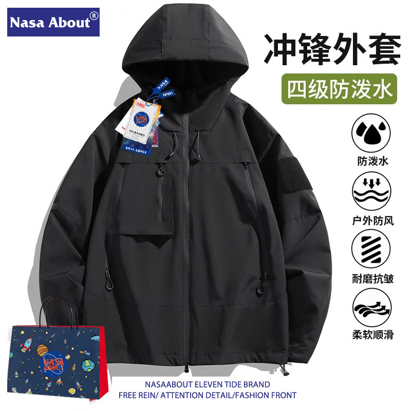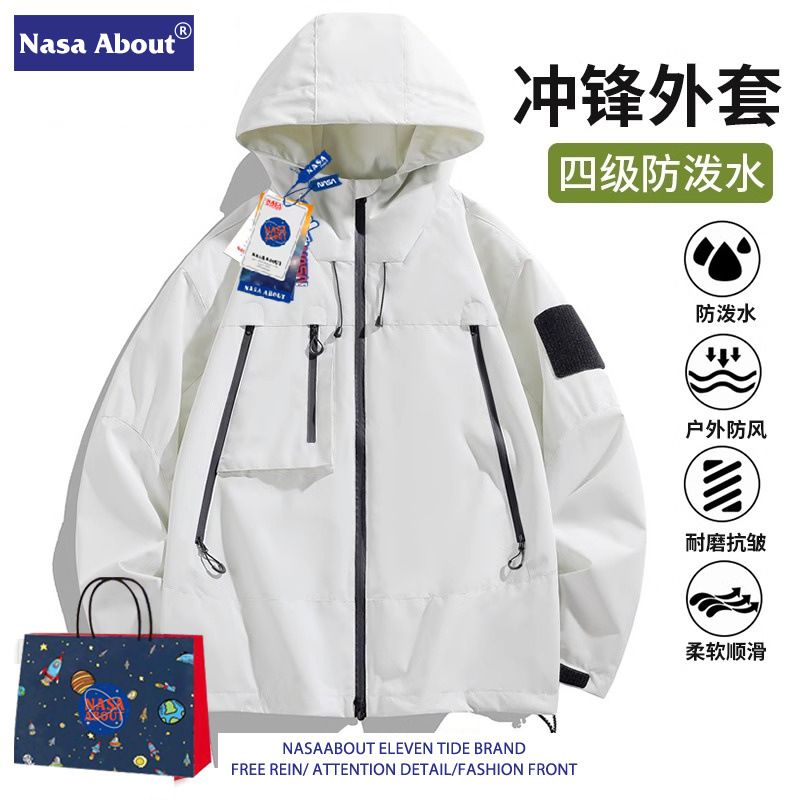 NASA 충전 의류 남성 봄과 가을 유행 야외 3 가지 방지 기술 느슨한 캐주얼 후드 재킷 코트스토어 가기