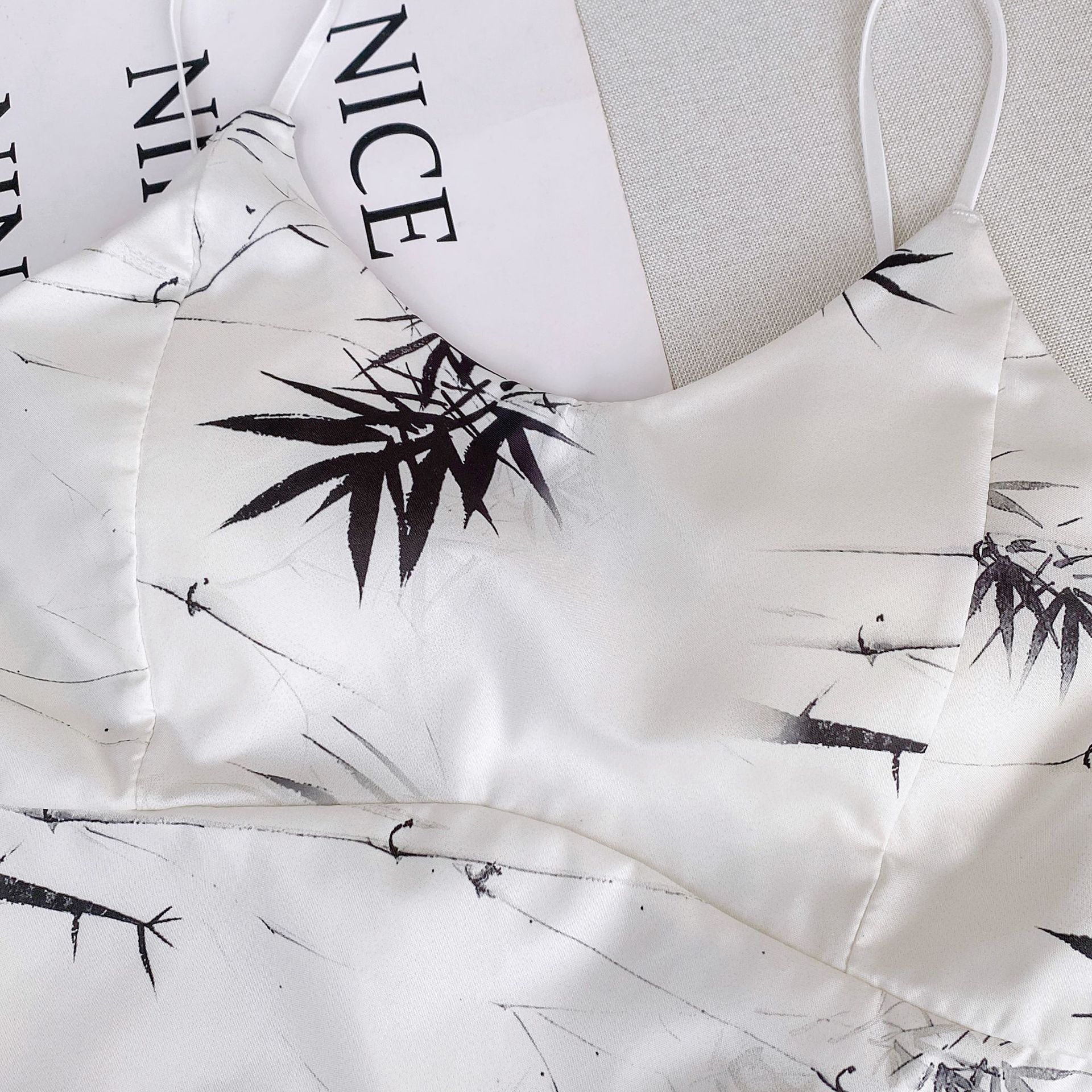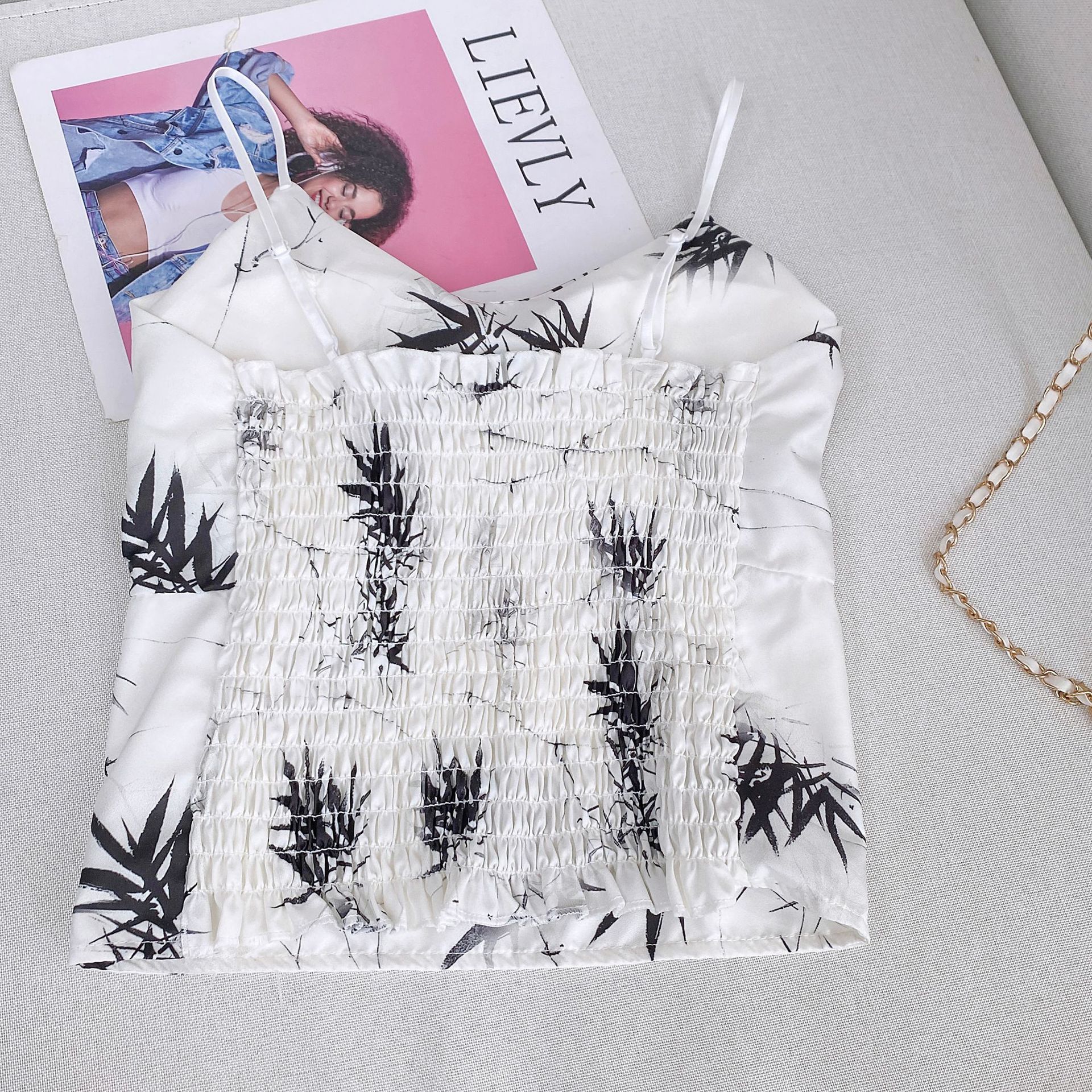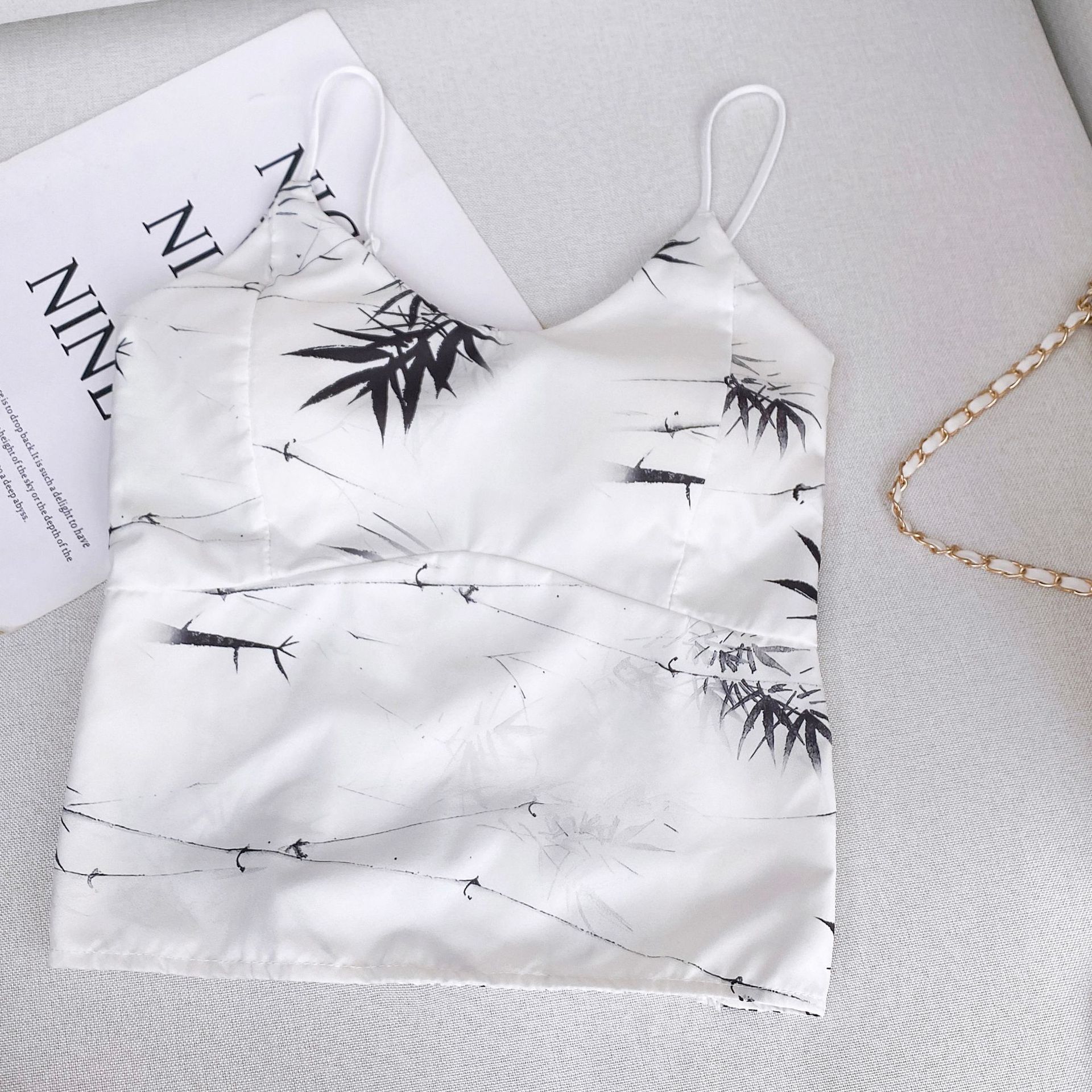 여름 신선한 중국 스타일 잉크 페인팅 인쇄 슬링 조끼 가슴 패드 고정 컵베이스 외부 착용 여성을위한 아름다운 뒷모습