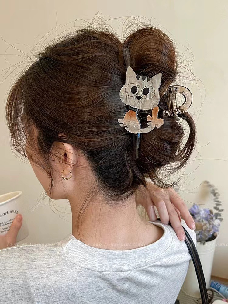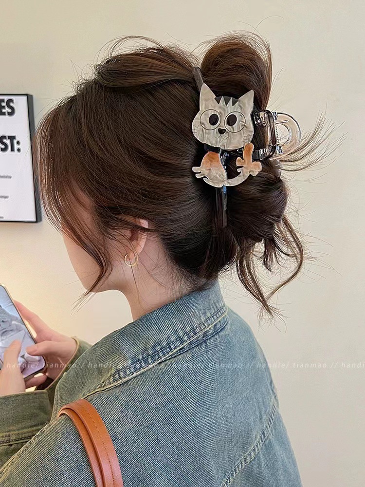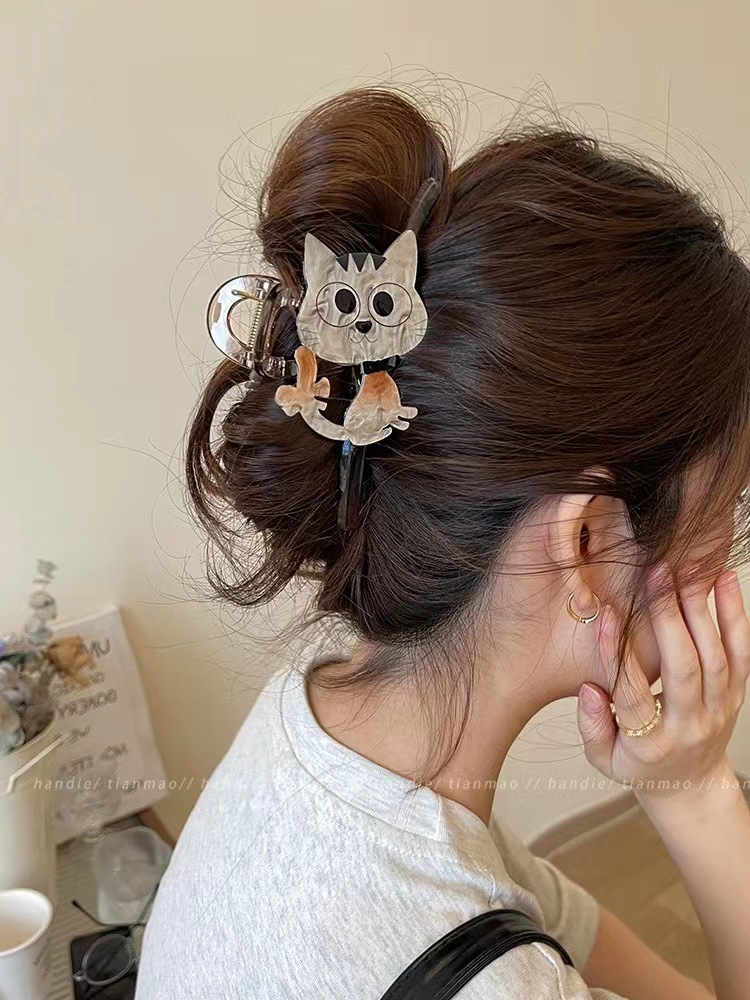귀엽고 귀여운 새끼 고양이 그랩 클립 여성의 2024 새로운 하이 엔드 상어 클립 헤어핀 머리 머리 머리 머리 클립스토어 가기