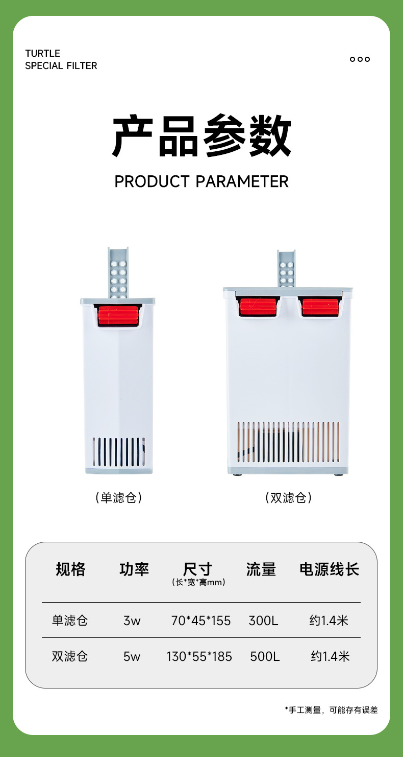 Yee Turtle 실린더 필터 낮은 수위 순환 필터 거북이 실린더 벽 장착 내장 흡입 컵 필터 크로스 국경 수출스토어 가기
