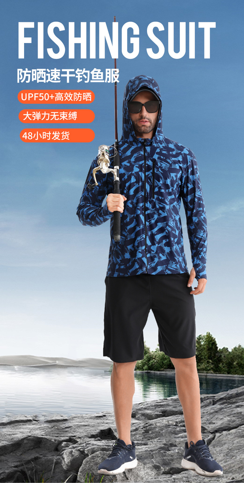 2024년 신상 봄 지퍼형 자외선 차단복 남성용 야외 위장 경량 낚시 자외선 차단복 남성용 속건 통기성스토어 가기