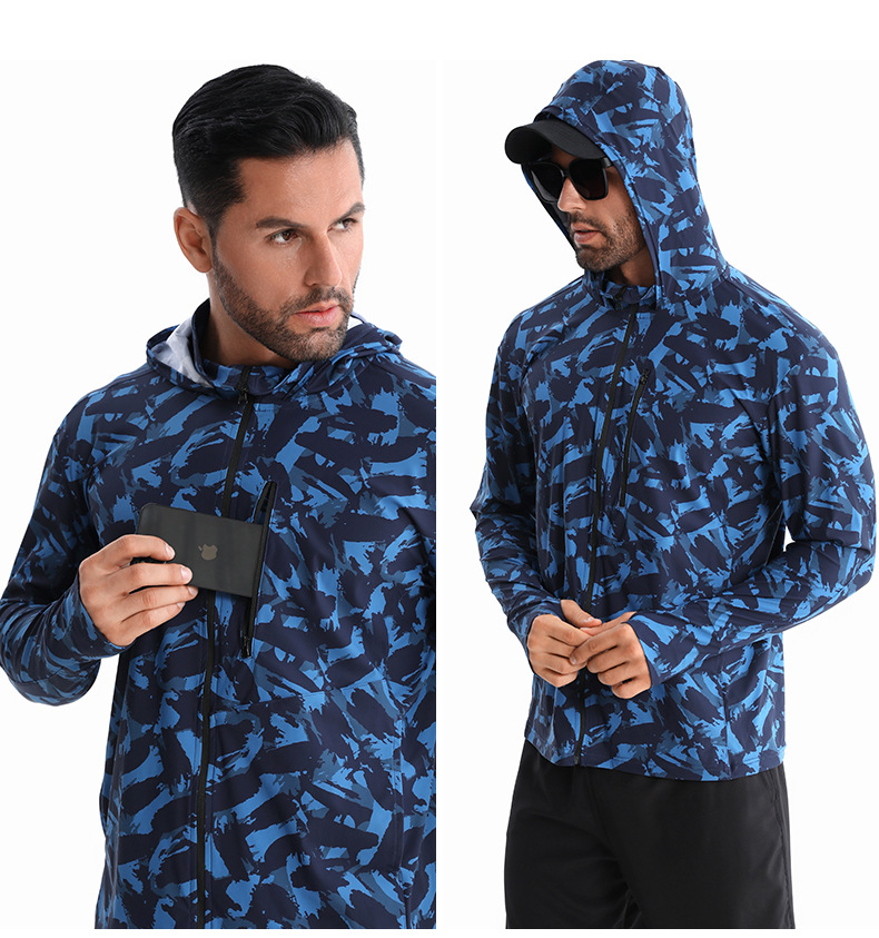 2024년 신상 봄 지퍼형 자외선 차단복 남성용 야외 위장 경량 낚시 자외선 차단복 남성용 속건 통기성