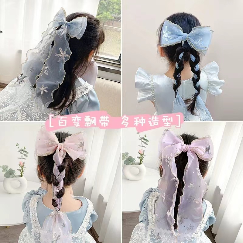눈송이 활 리본 헤어핀 어린이 한국식 헤어 테인 메쉬 헤드웨어 공주 엘사 헤어 타이잉 헤어핀