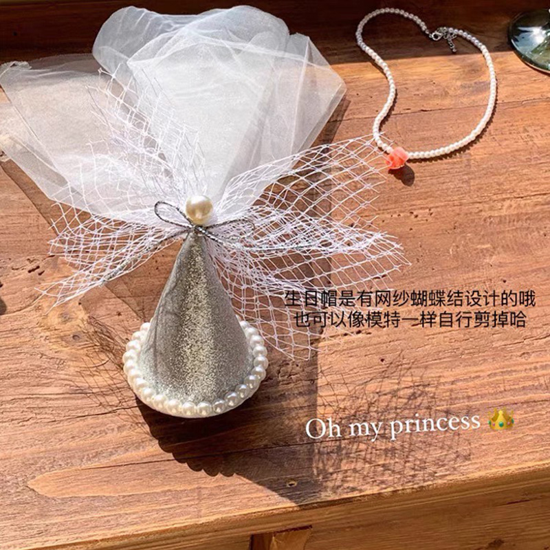 공주 생일 진주 생일 모자 헤어핀 인터넷 연예인 원피스 생일 파티 사진 분위기 소품 헤어 액세서리