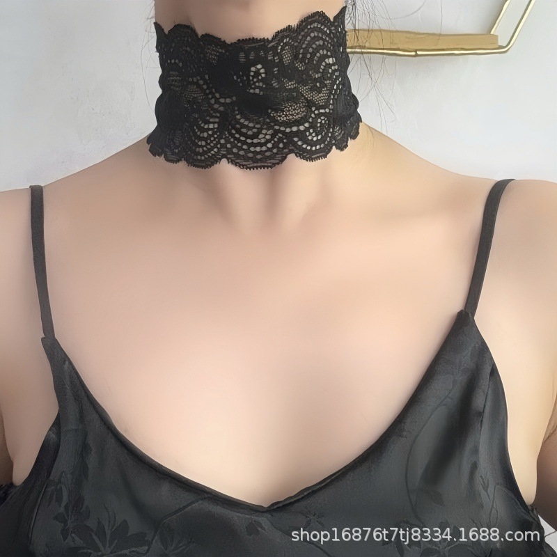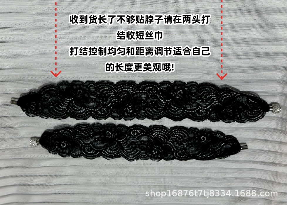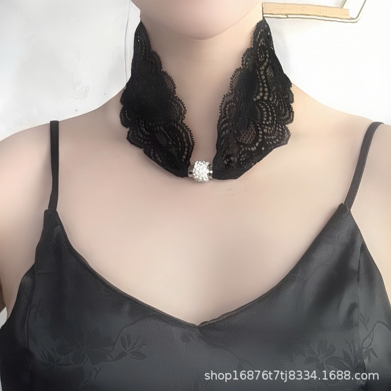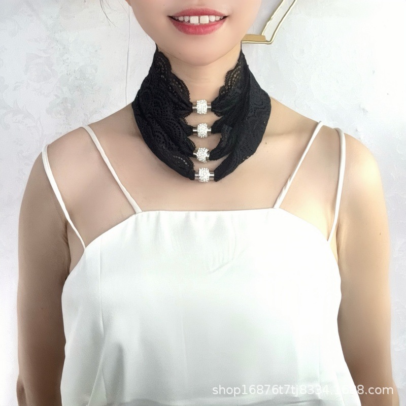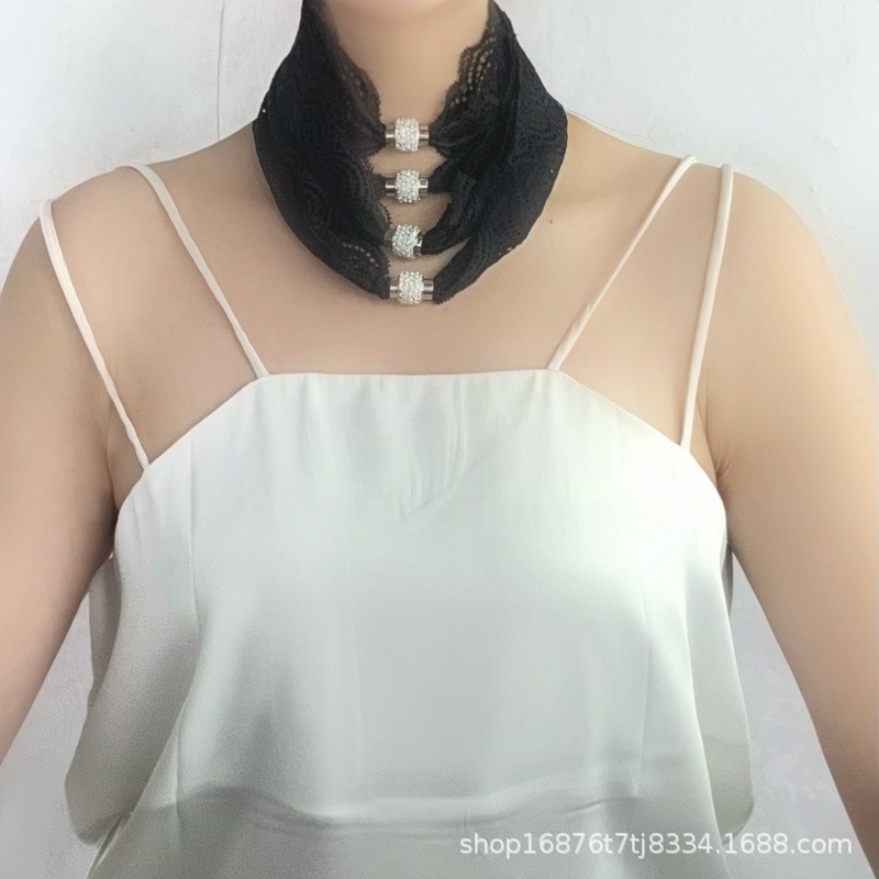 • 레이스 마그네틱 버클 실크 스카프 블랙