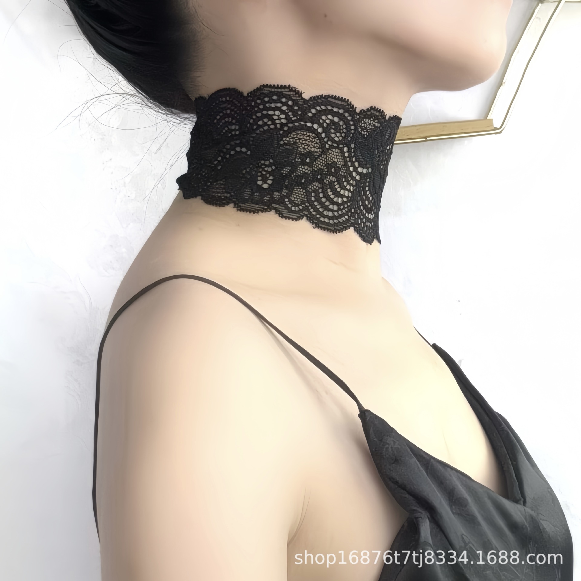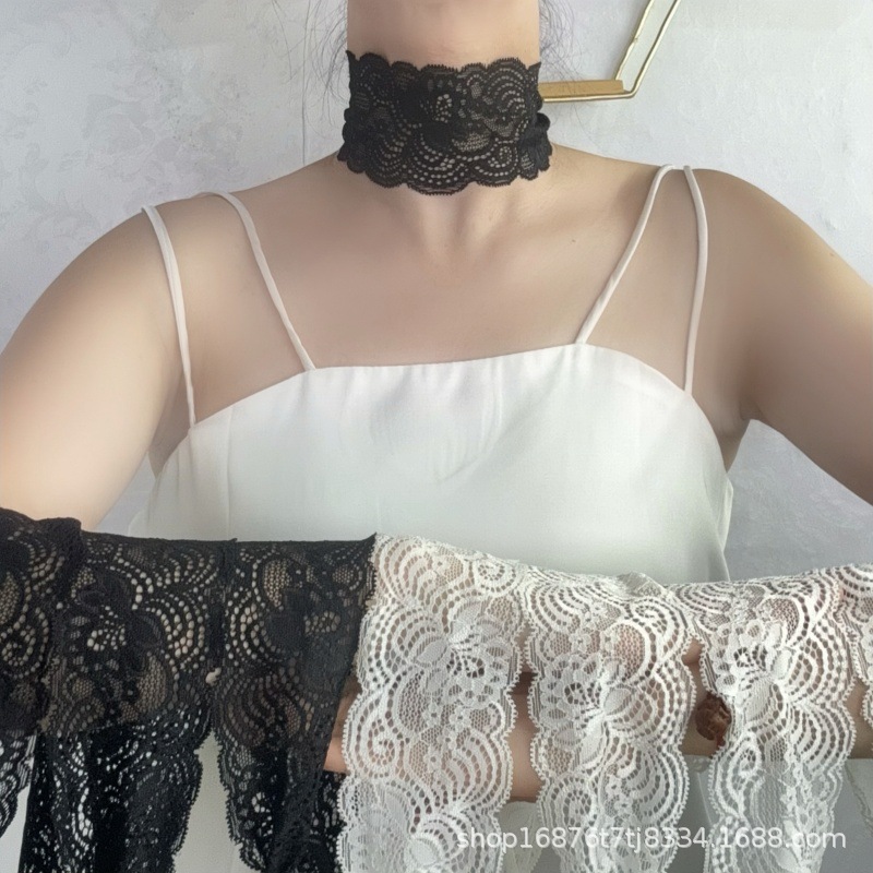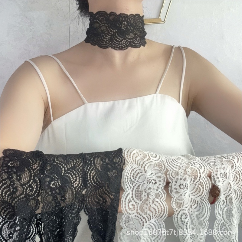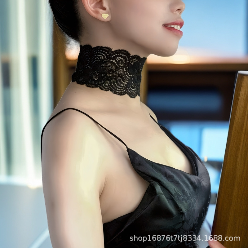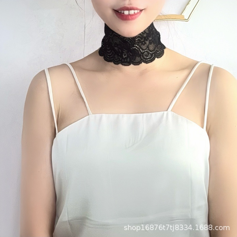 • 레이스 마그네틱 버클 실크 스카프 블랙