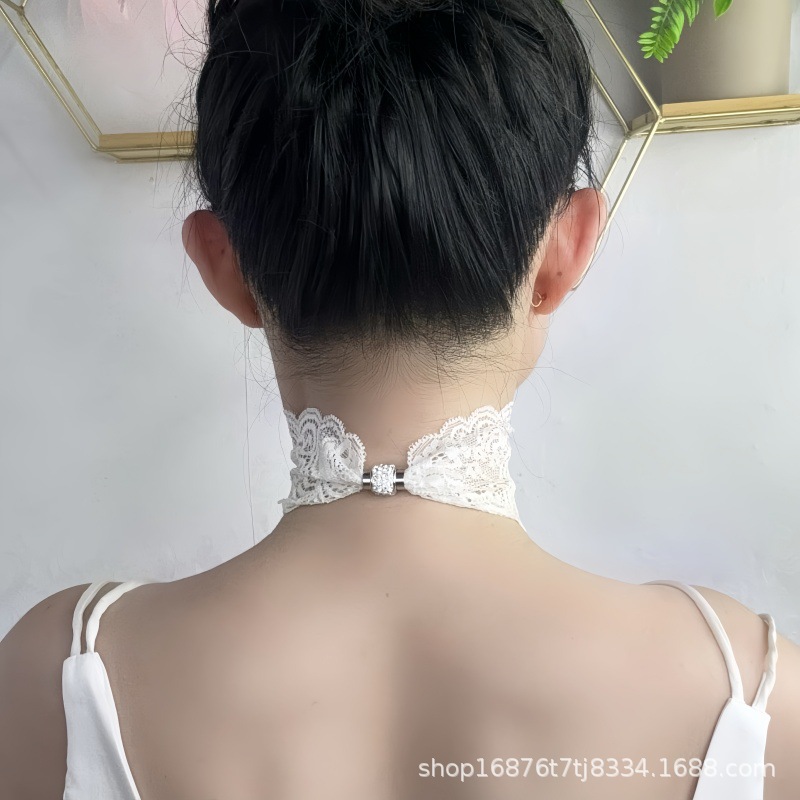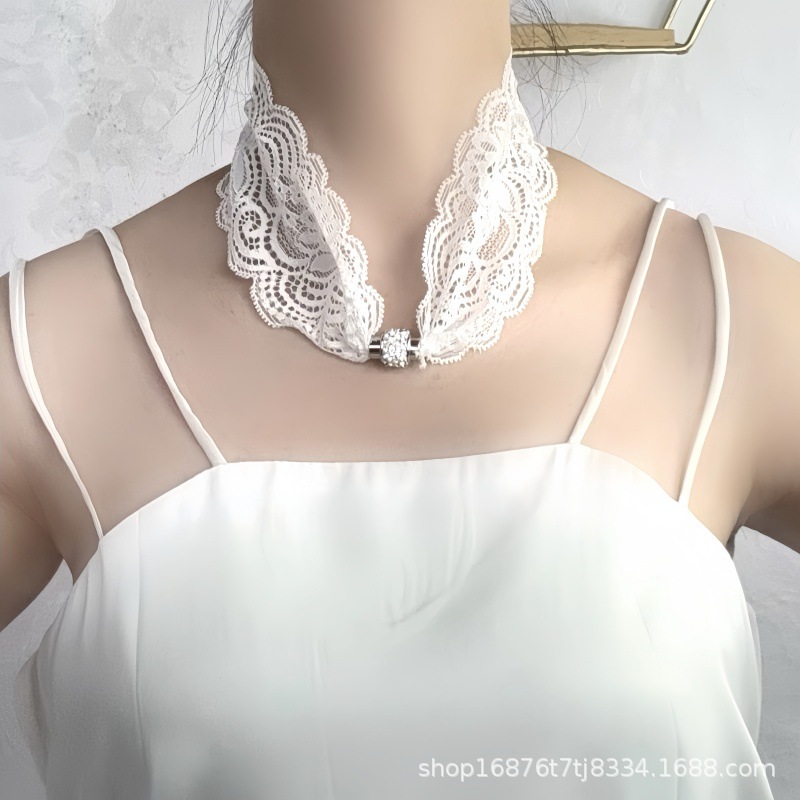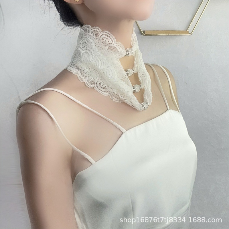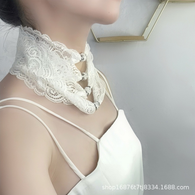 실크 스카프 여성 폭발 2024 새로운 레이스 레이스 마그네틱 버클 실크 스카프 여름 목 보호 작은 실크 스카프 패션 올 매치