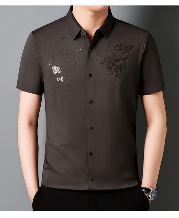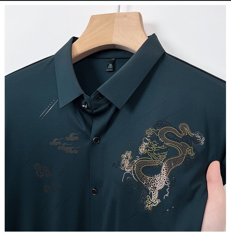 2024 여름 새로운 남성 아이스 실크 옷깃 카디건 캐주얼 티셔츠 남성 헤어 세대스토어 가기
