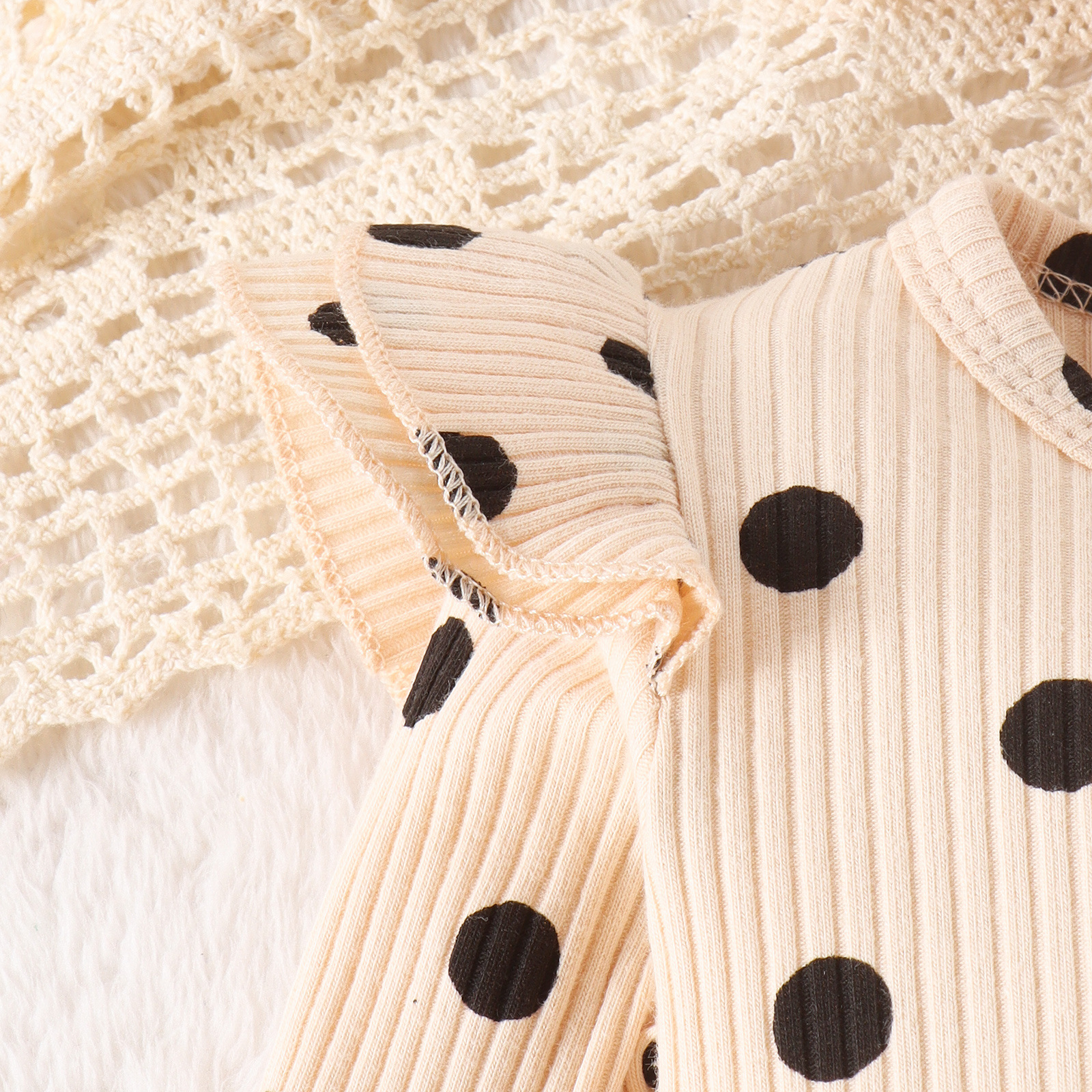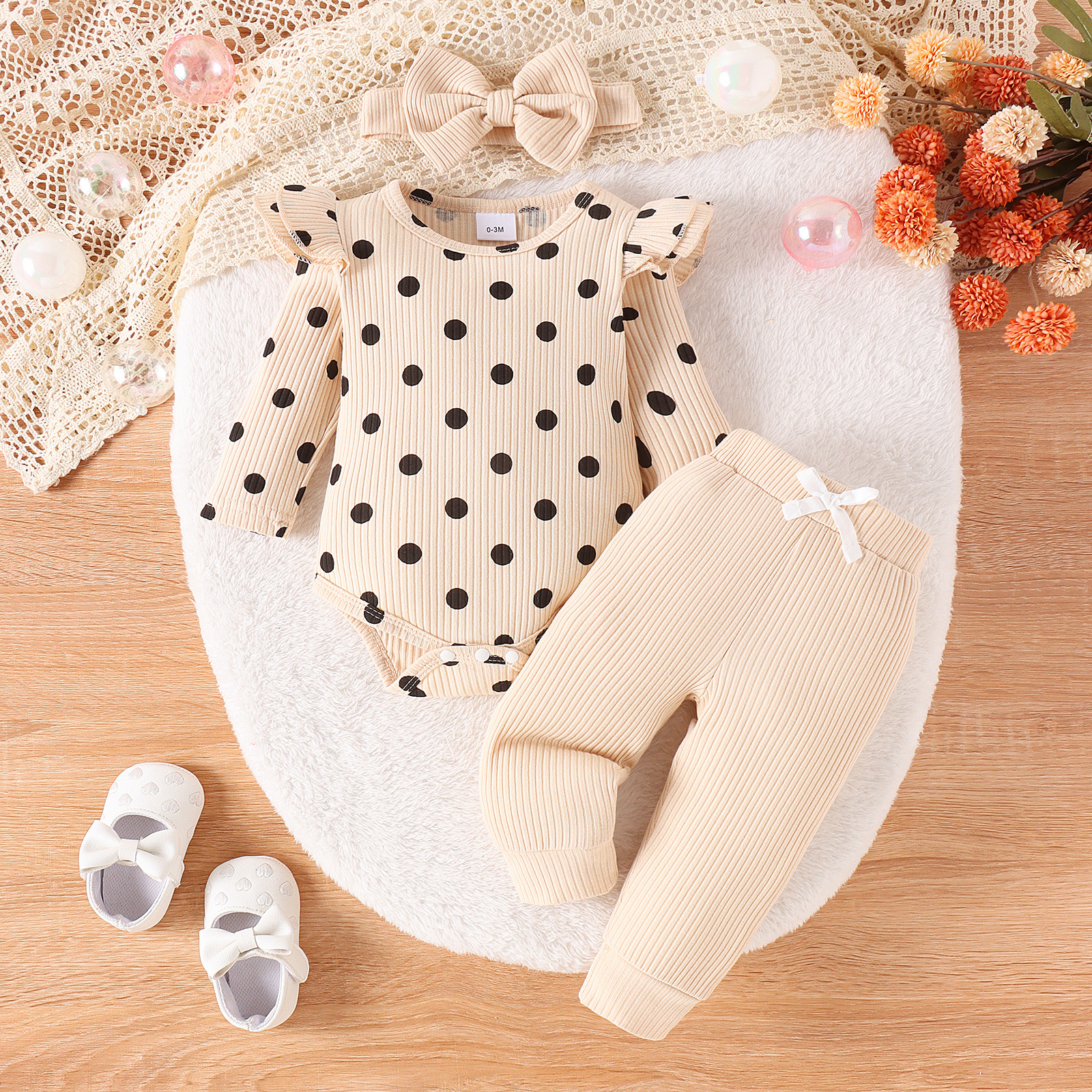 대외 무역 유럽과 미국의 어린이 뜨거운 가을과 겨울 새로운 비행 슬리브 도트 긴 소매 방귀 탑 솔리드 컬러 바지 헤어 밴드 세트