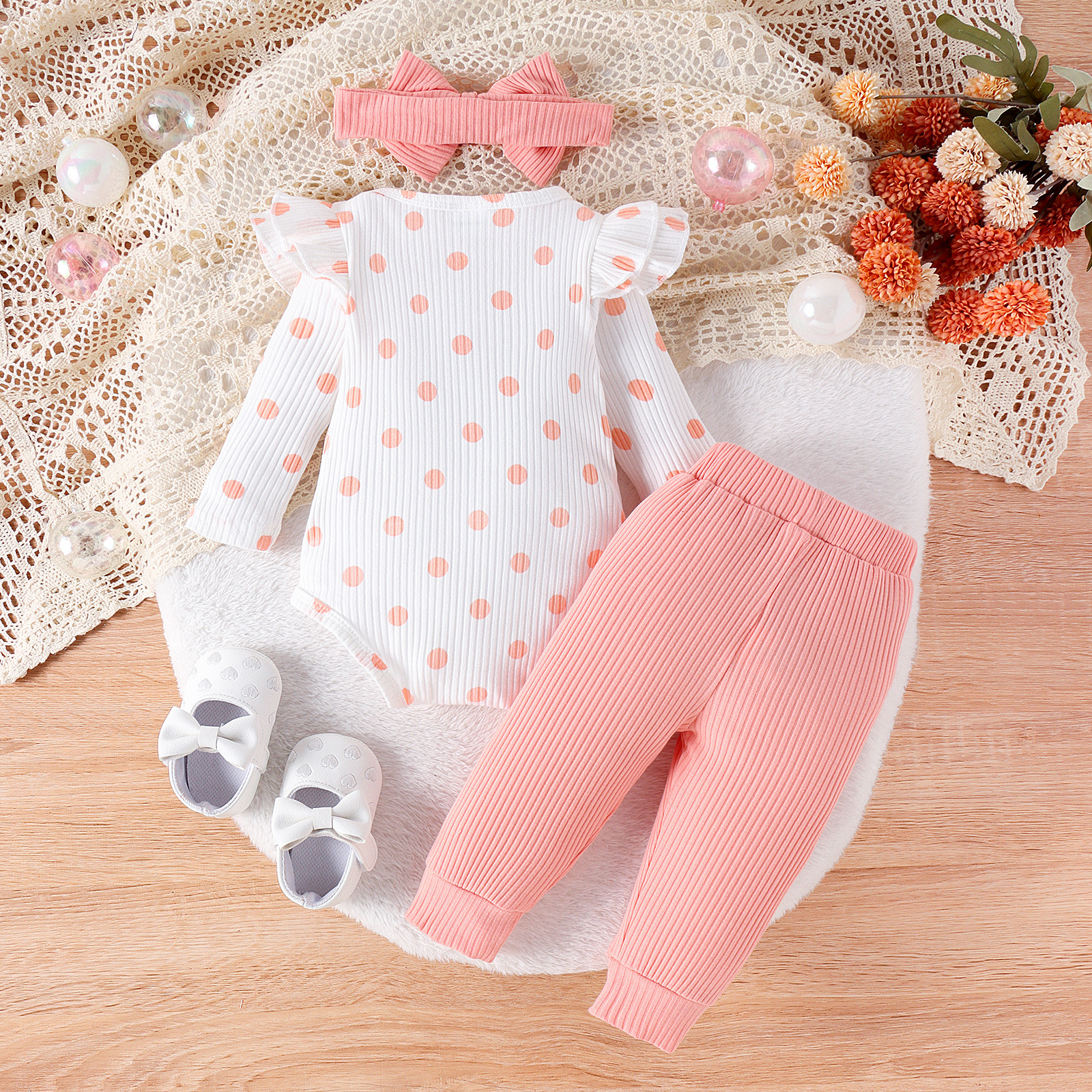 대외 무역 유럽과 미국의 어린이 뜨거운 가을과 겨울 새로운 비행 슬리브 도트 긴 소매 방귀 탑 솔리드 컬러 바지 헤어 밴드 세트스토어 가기