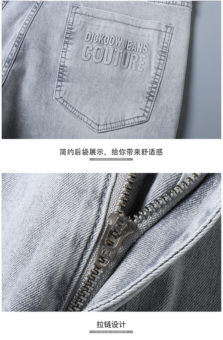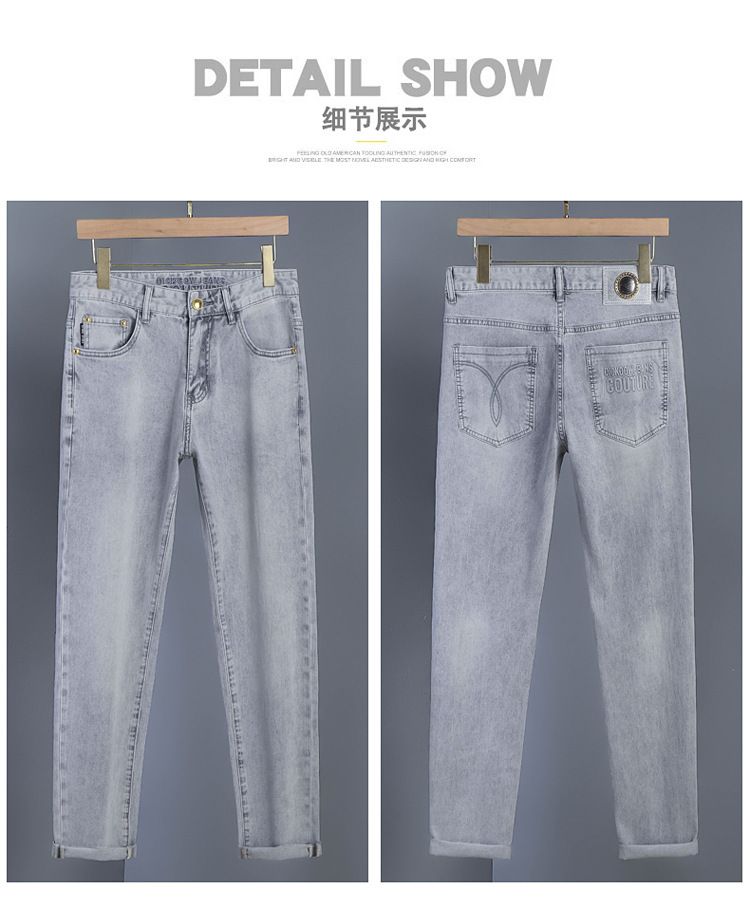 2024 여름 얇은 청바지 남자 유럽산 슬림 핏 작은 스트레이트 스트레치 캐주얼 바지 트렌디 브랜드 올매치 청소년