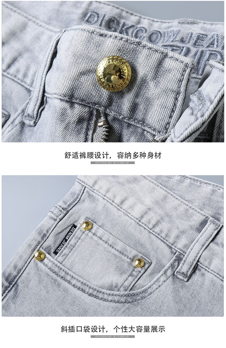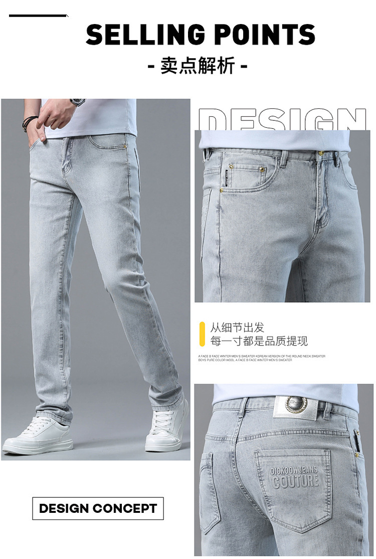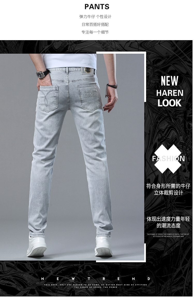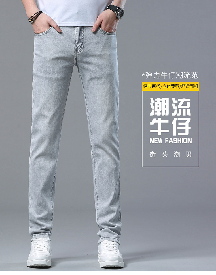 2024 여름 얇은 청바지 남자 유럽산 슬림 핏 작은 스트레이트 스트레치 캐주얼 바지 트렌디 브랜드 올매치 청소년스토어 가기