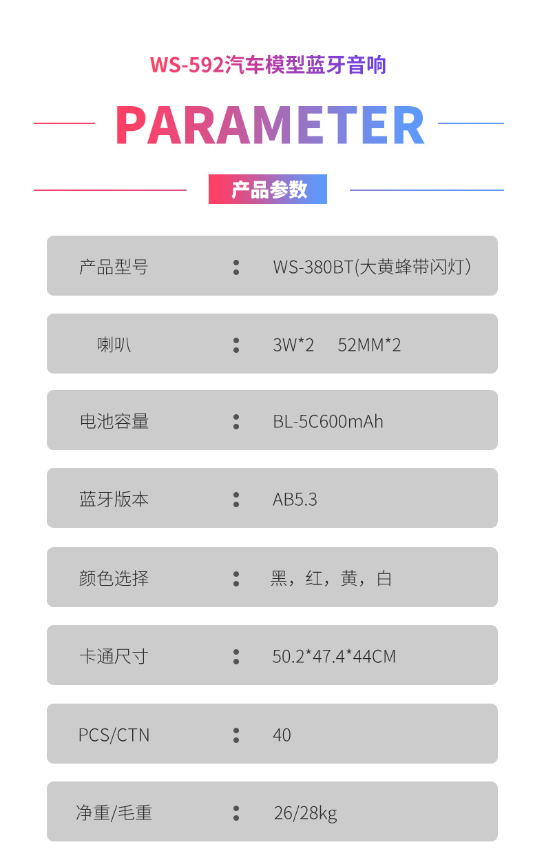 型号(MODEL):WS-380BT(大黄蜂车)