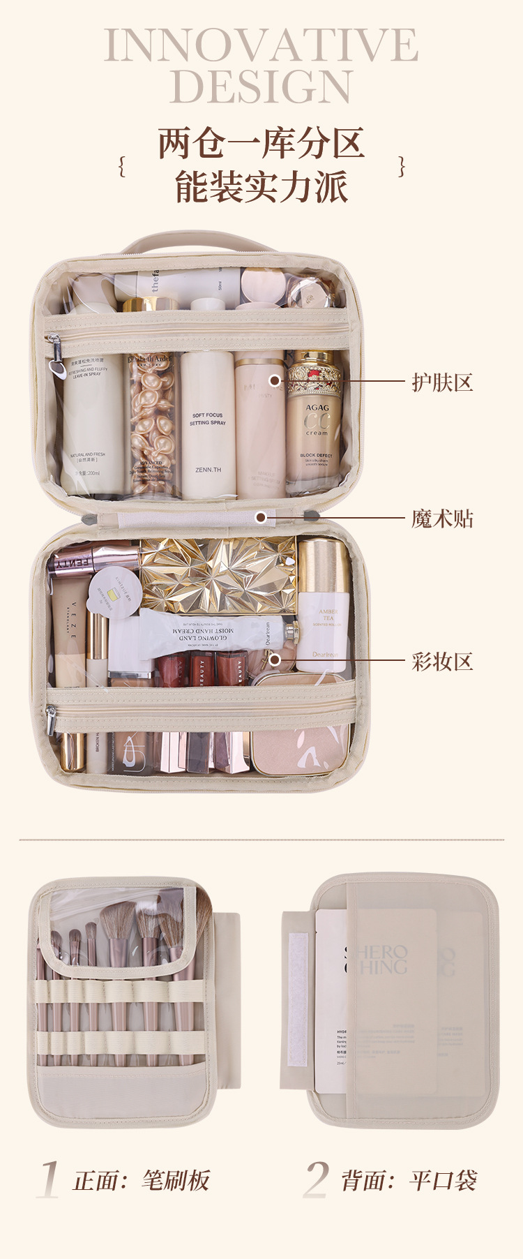 3 대 1 다기능 파티션 스토리지 PU 화장품 가방 대용량 고급 휴대용 화장품 브러시 보관 가방