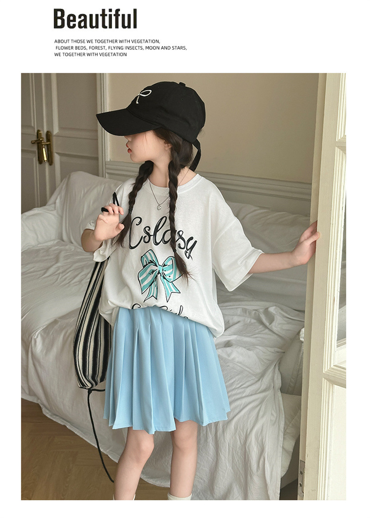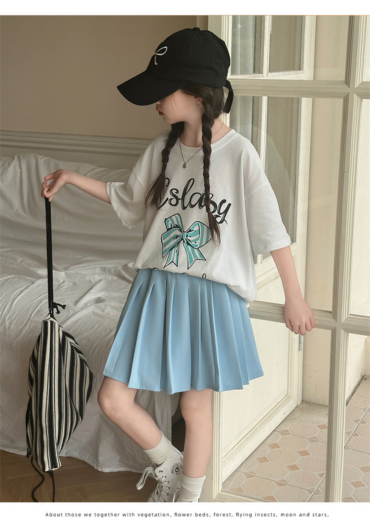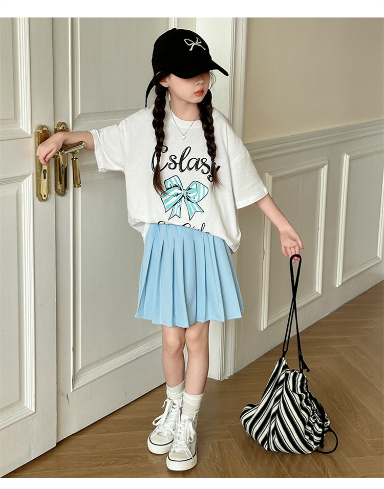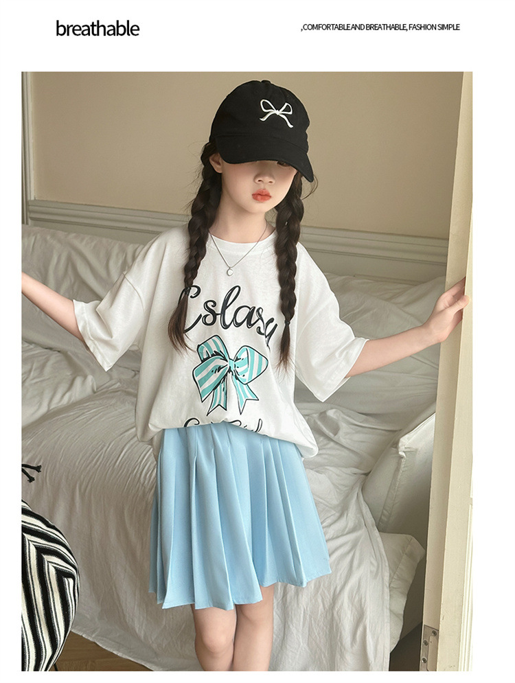 여자 세트 여름 2024 새로운 서양식 어린이 한국 스타일 패션 짧은 소매 여자 스커트 투피스 스커트