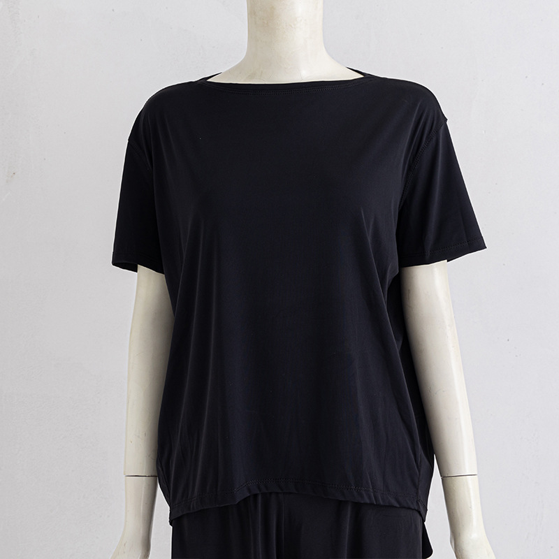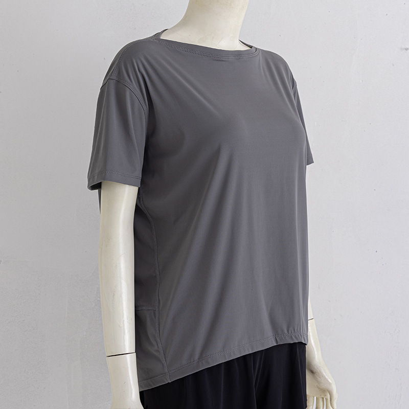 여름 새로운 박쥐 꼬리 반소매 느슨한 티셔츠 국경 스포츠 최고 여성 아이스 센스 퀵 드라이 블라우스 요가 옷