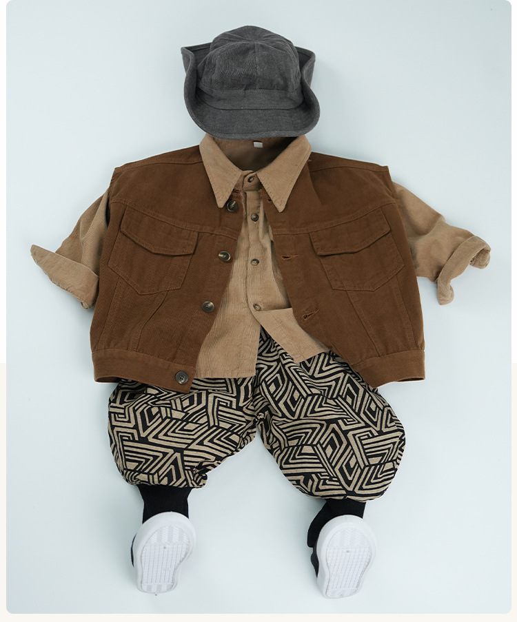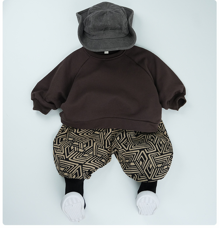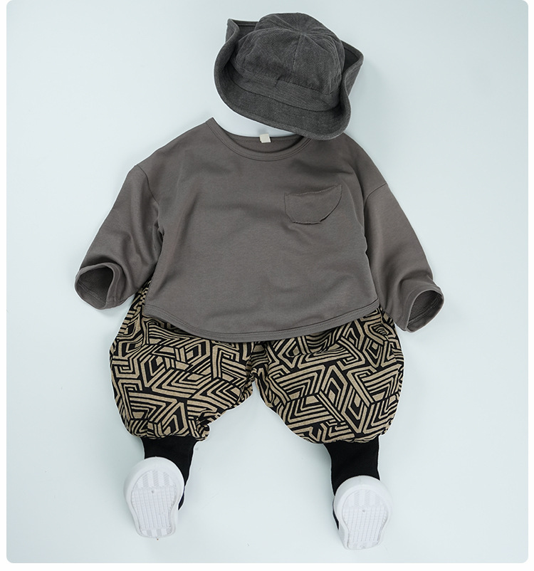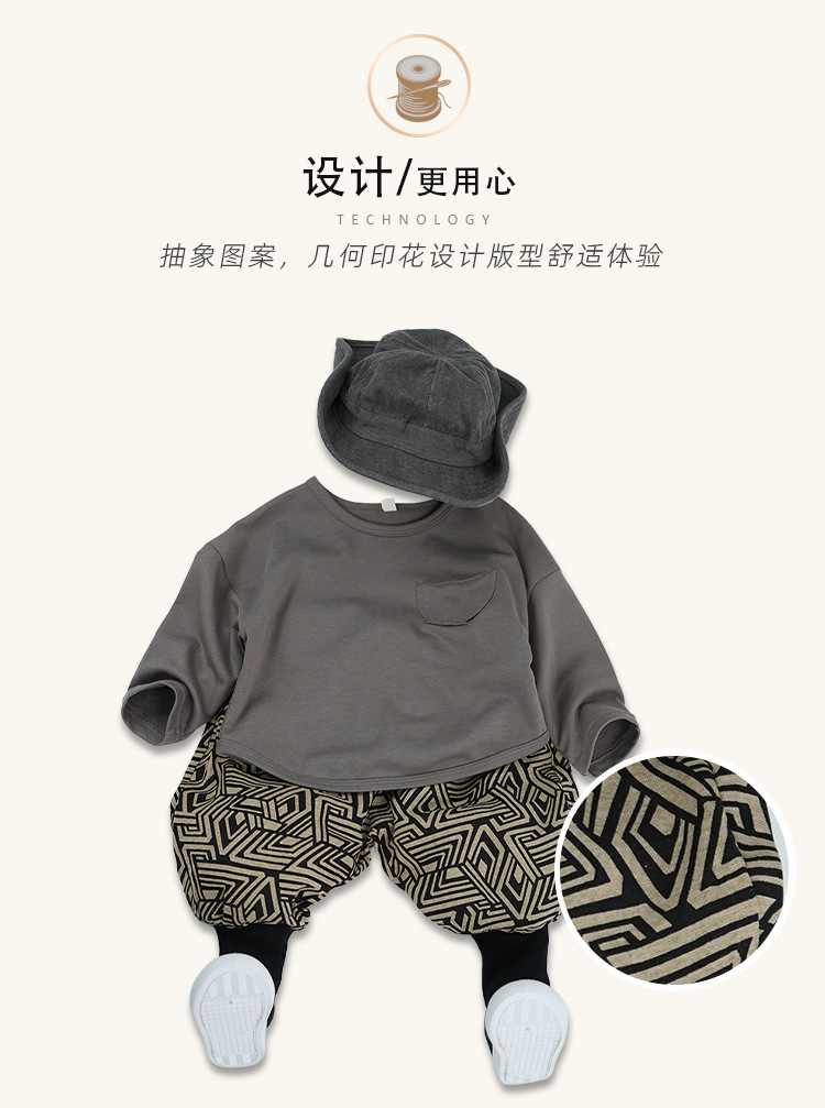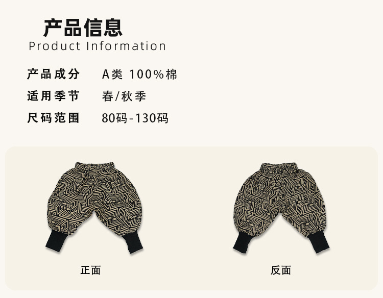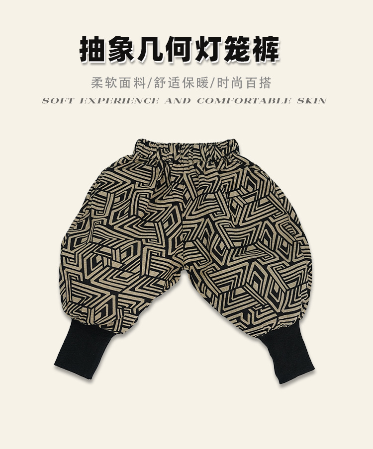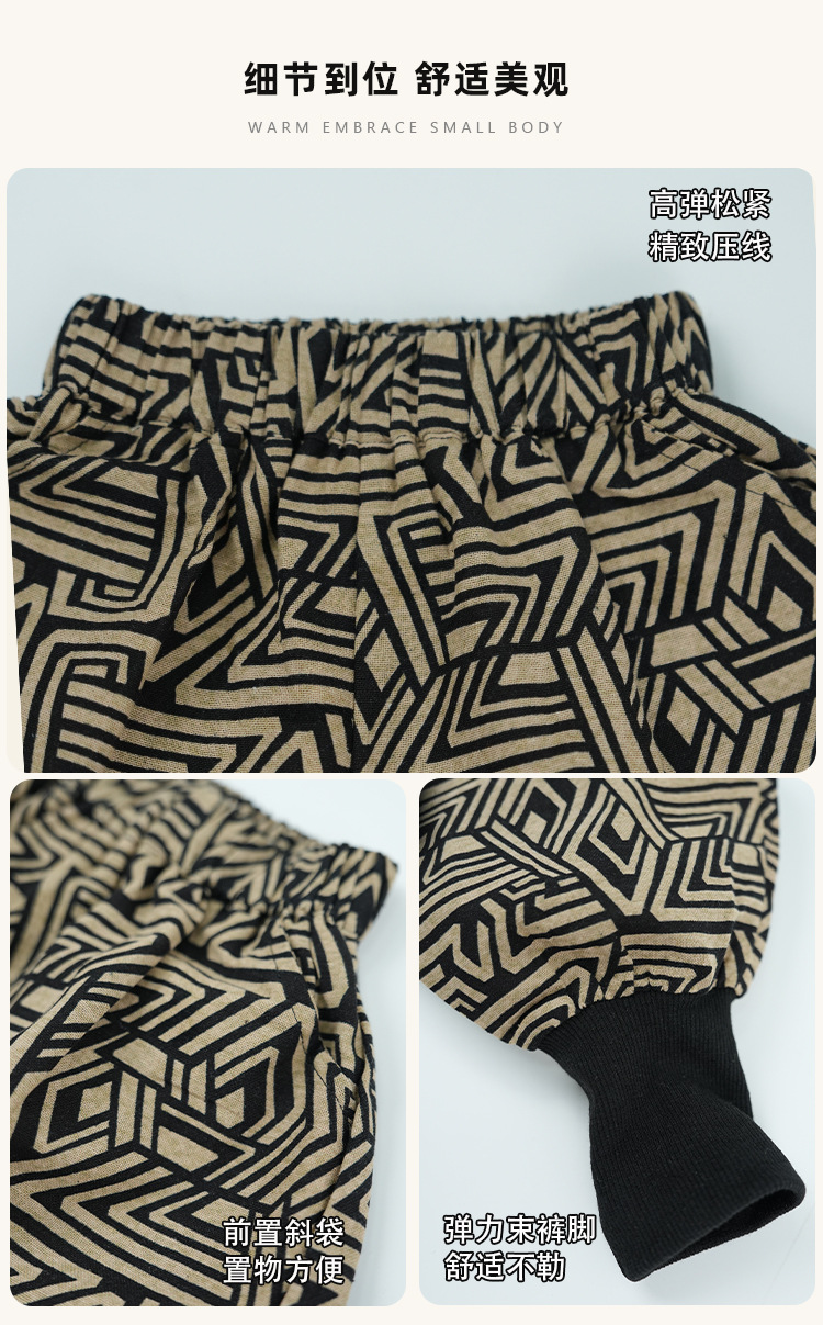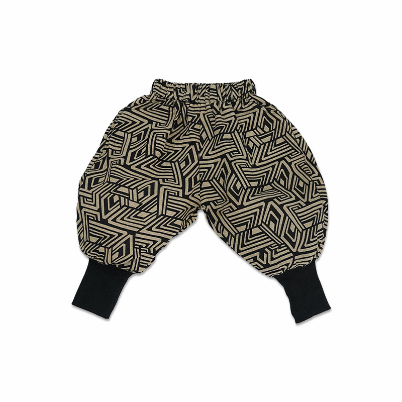남학생과 여학생 레트로, 서양식 발 바지 기하학 인쇄 할란 바지 아기의 발 수집 봄과 가을 새로운 봄과 가을 블루머