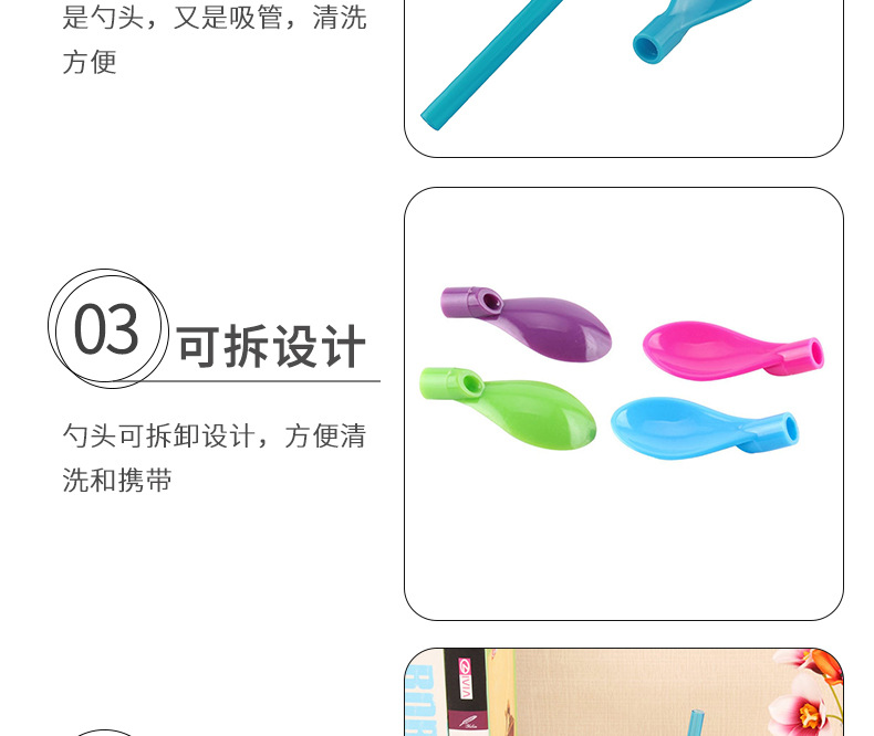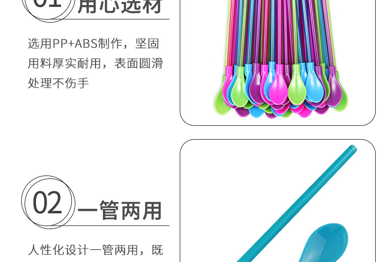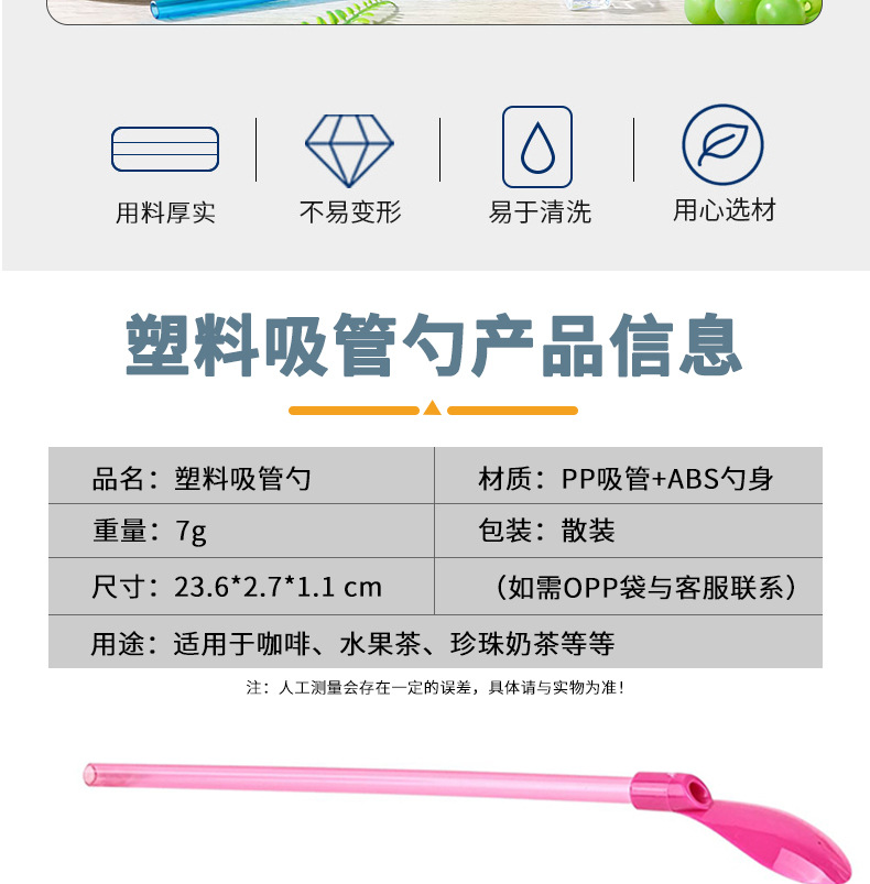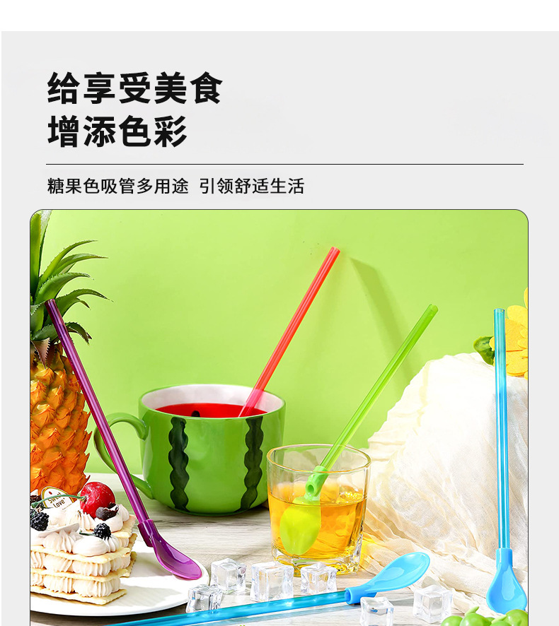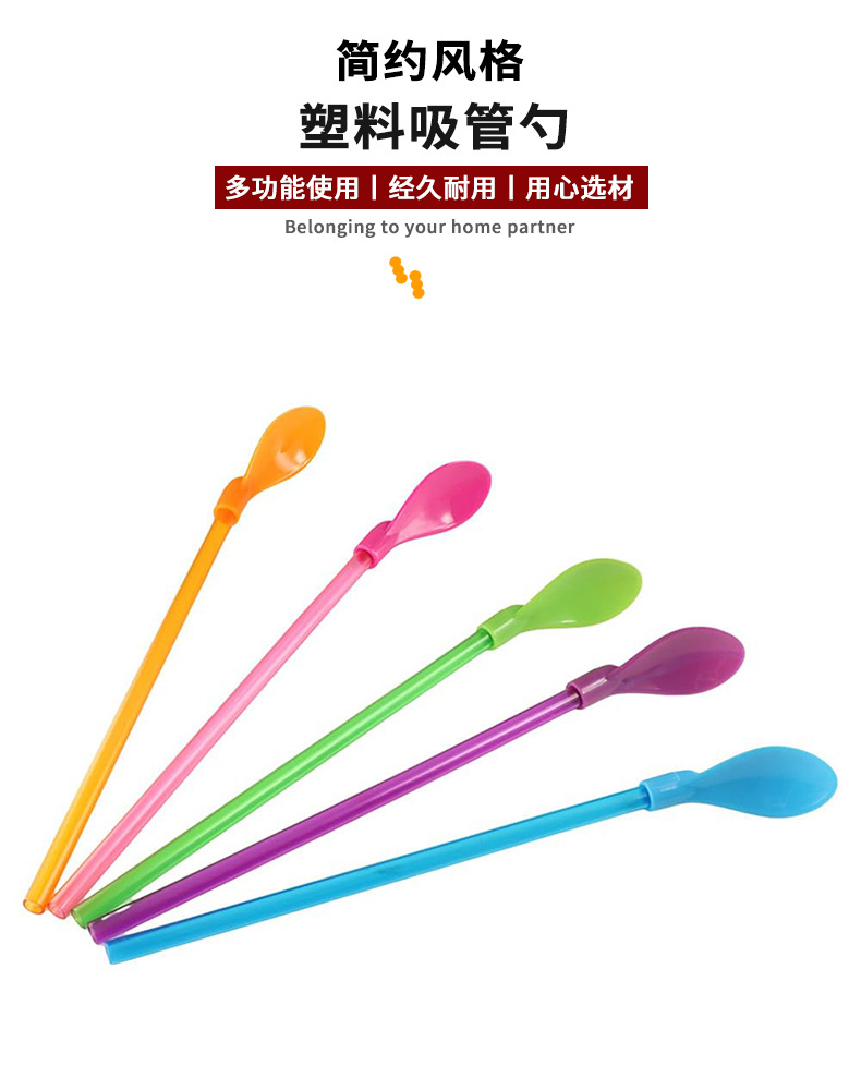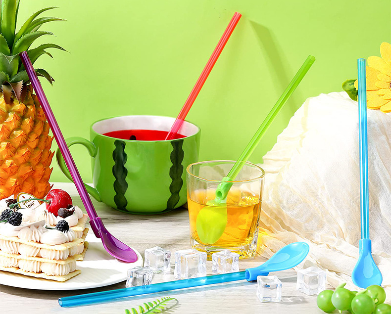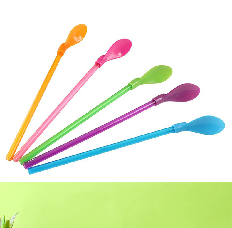 제조 업체 재고 플라스틱 이중 목적 짚 숟가락 캔디 컬러 창조적 인 혼합 숟가락 스무디 분리 가능한 밀짚 숟가락