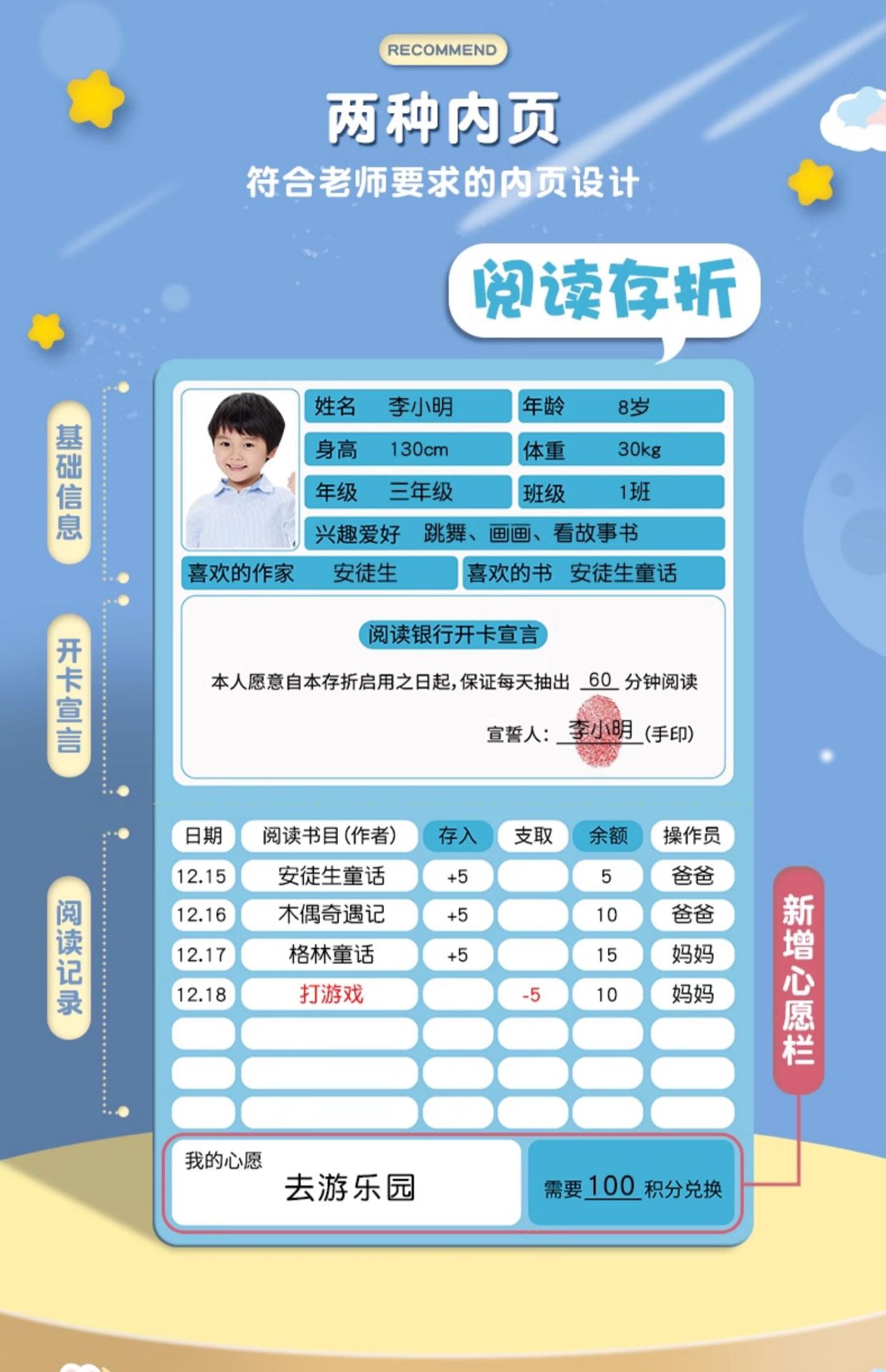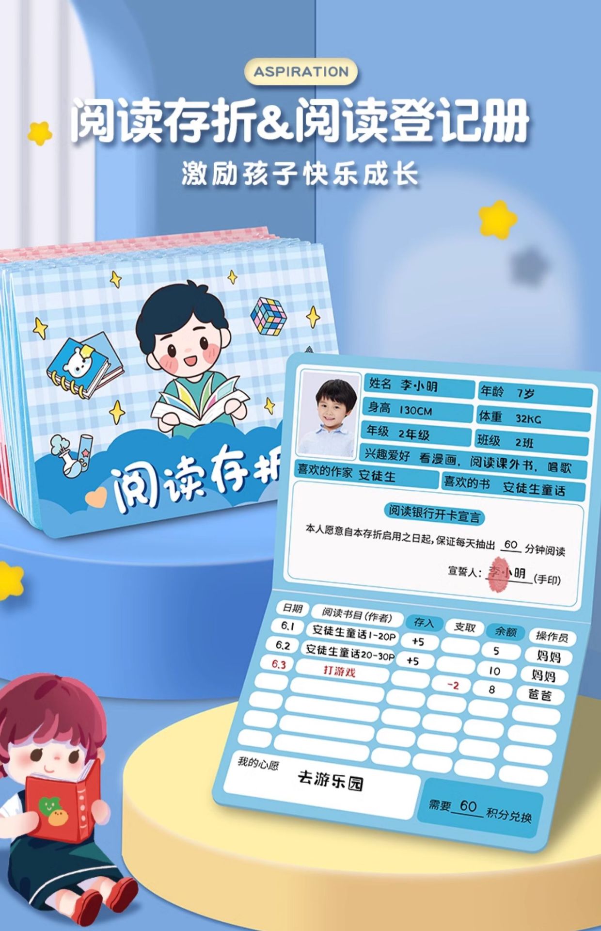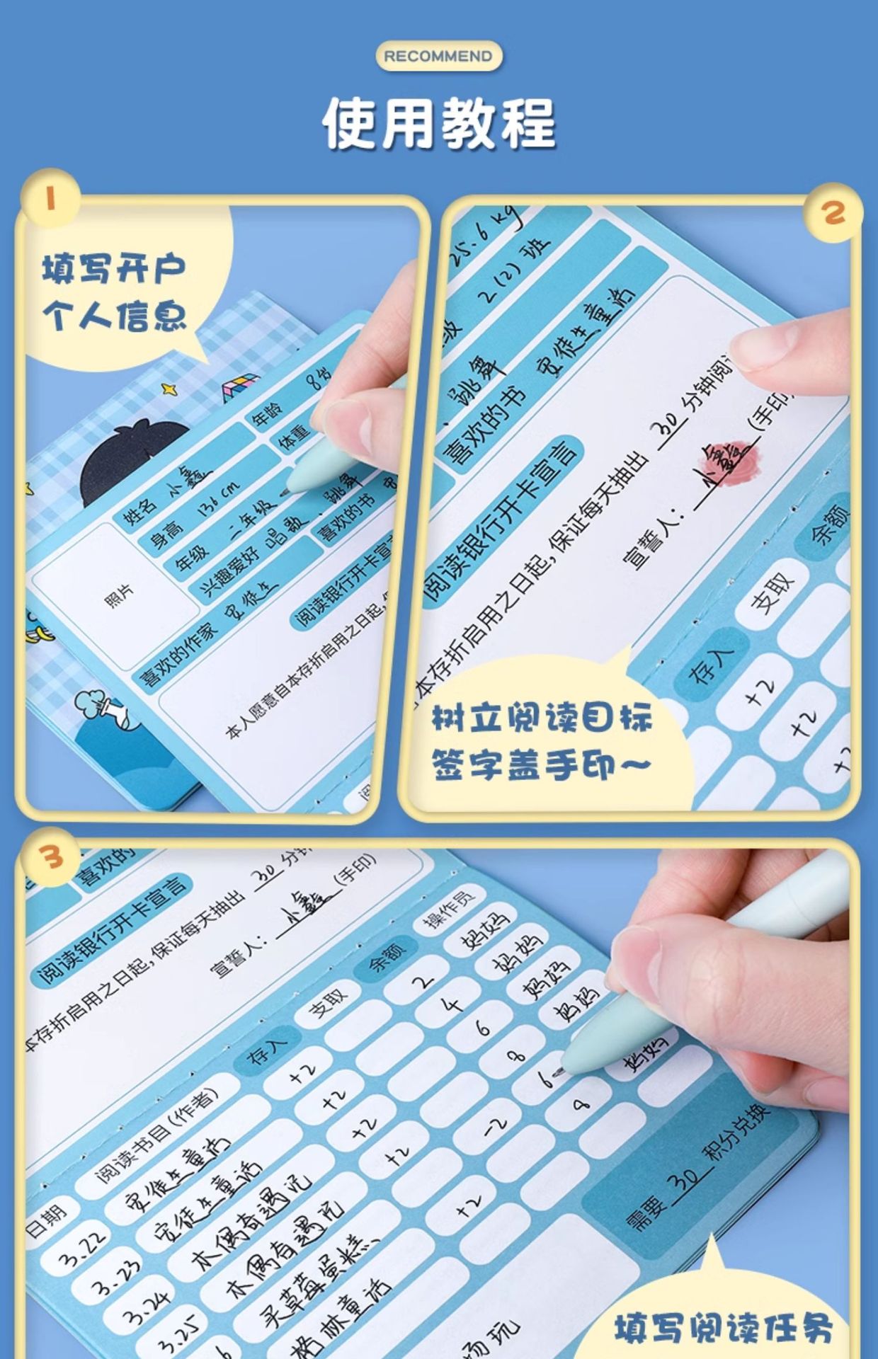 통장 기록 카드 읽는 어린이 통장 카드 학습 유치원 초등학교 1 학년 등록