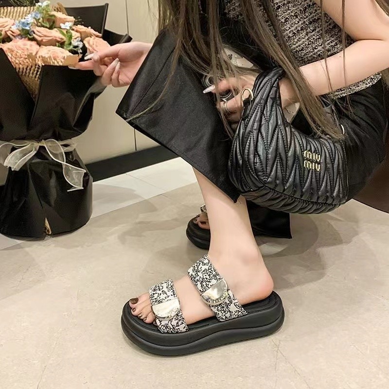 두꺼운 밑창 슬리퍼 여성 여름 착용 2024 새로운 레저 비치 슬리퍼 스텝 배설물 느낌 빵 슬리퍼 여성스토어 가기