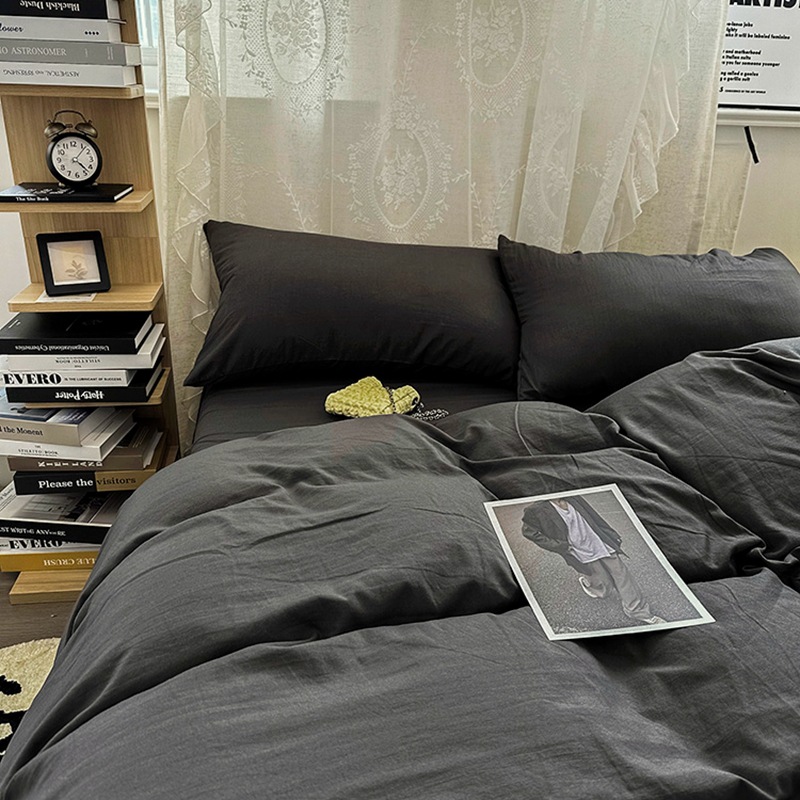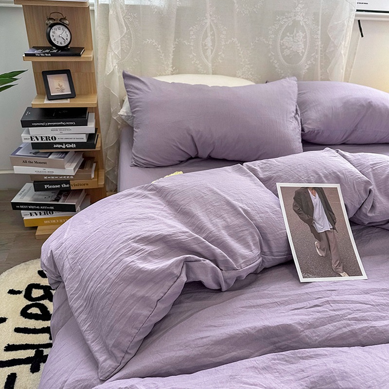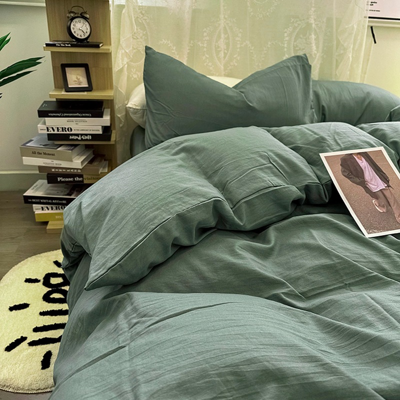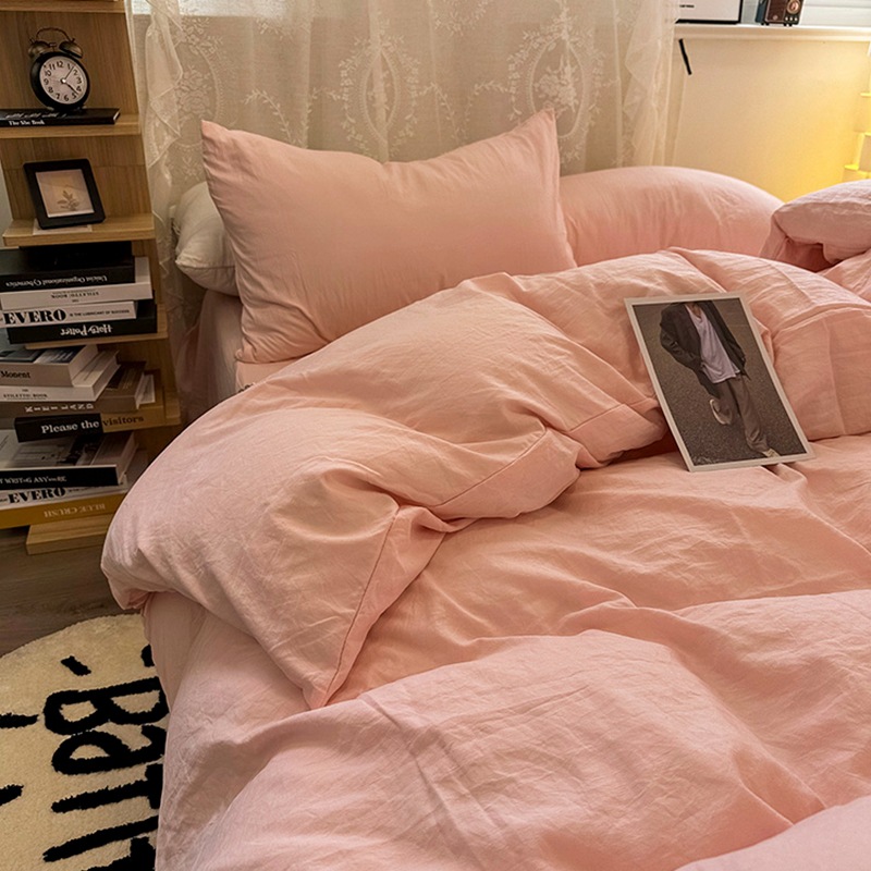 小红书超柔水洗棉床上四件套A类双层纱床单被套宿舍三件套床笠款4