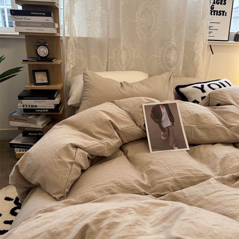 小红书超柔水洗棉床上四件套A类双层纱床单被套宿舍三件套床笠款4스토어 가기