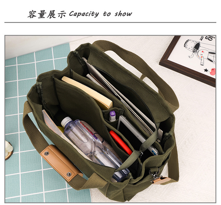 대용량 캔버스백, 고품질 토트백, 다기능 다중 수납공간 휴대용 크로스백