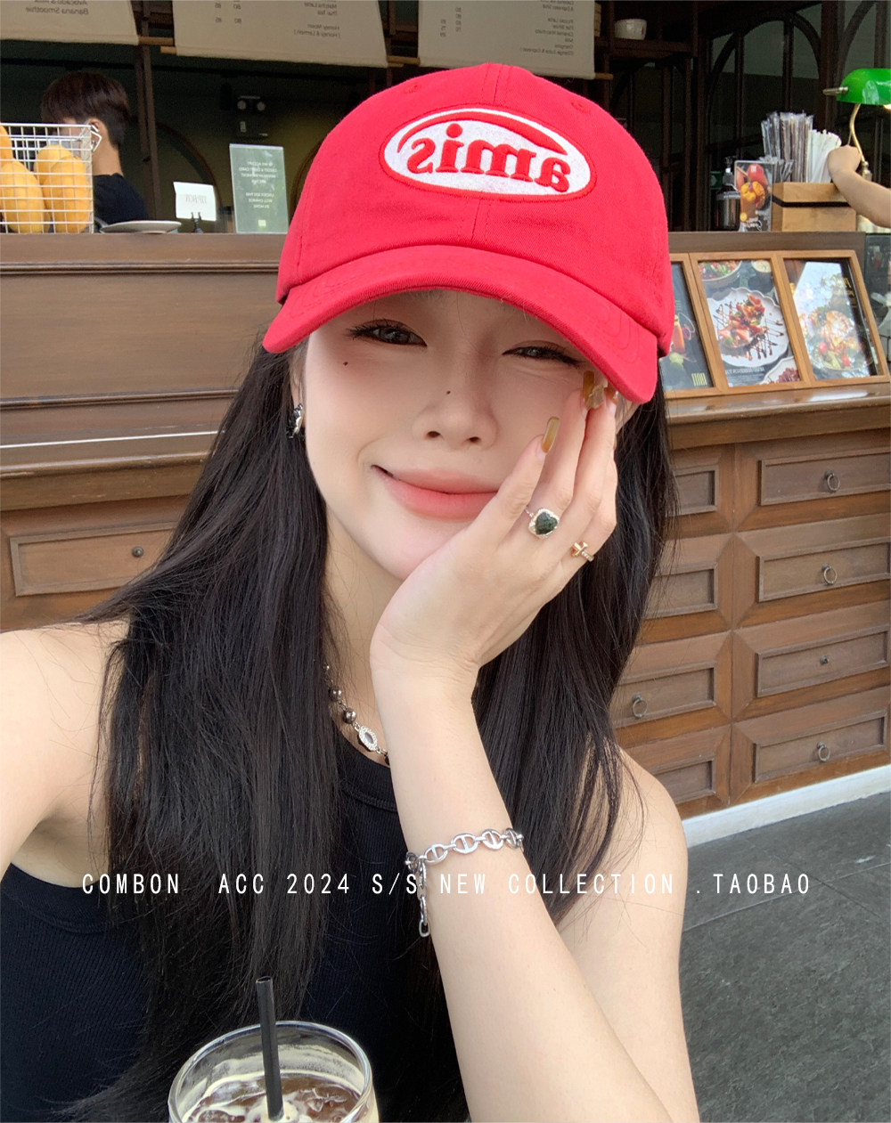 한국 인 모자 레드 야구 모자 여자 봄과 여름 캐주얼 스티커 올 매치 소프트 탑 빅 헤드 캡 남자 모자스토어 가기
