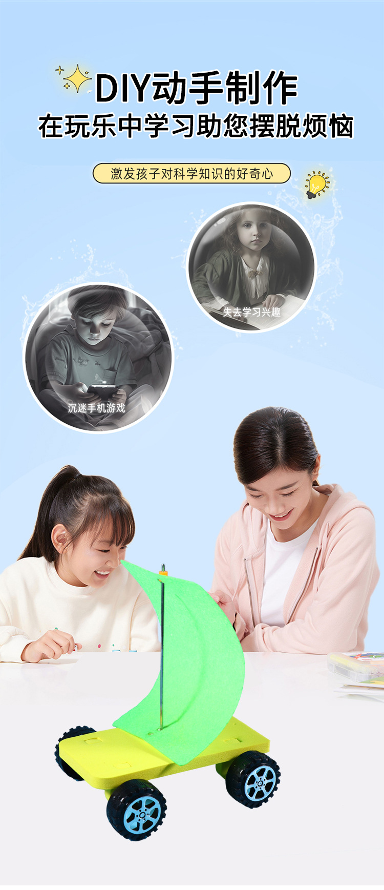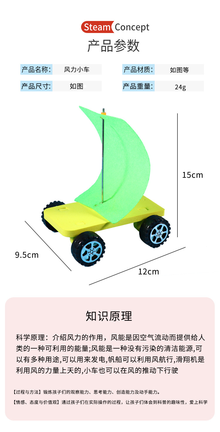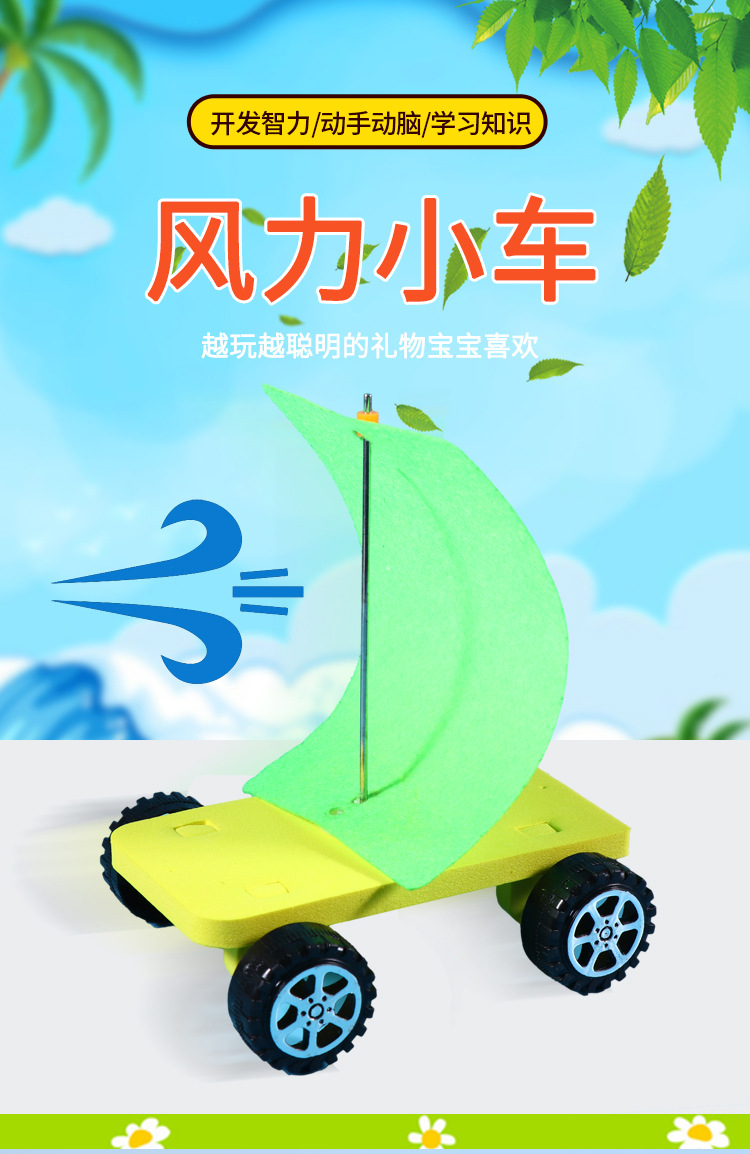 풍력 자동차 DIY 수공예 과학 소형 제작 키트 초등학교 과학 환경 친화적 에너지 실험 교육용 세트 재료스토어 가기