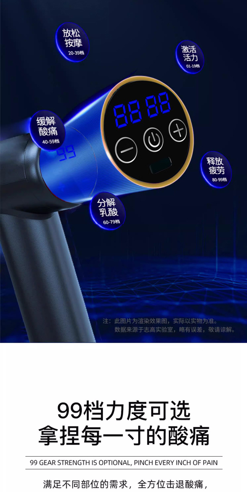 • [LCD 모델] 8개의 전문 마사지 헤드 + 99단 기어 조절 + 오래 지속되는 배터리 수명