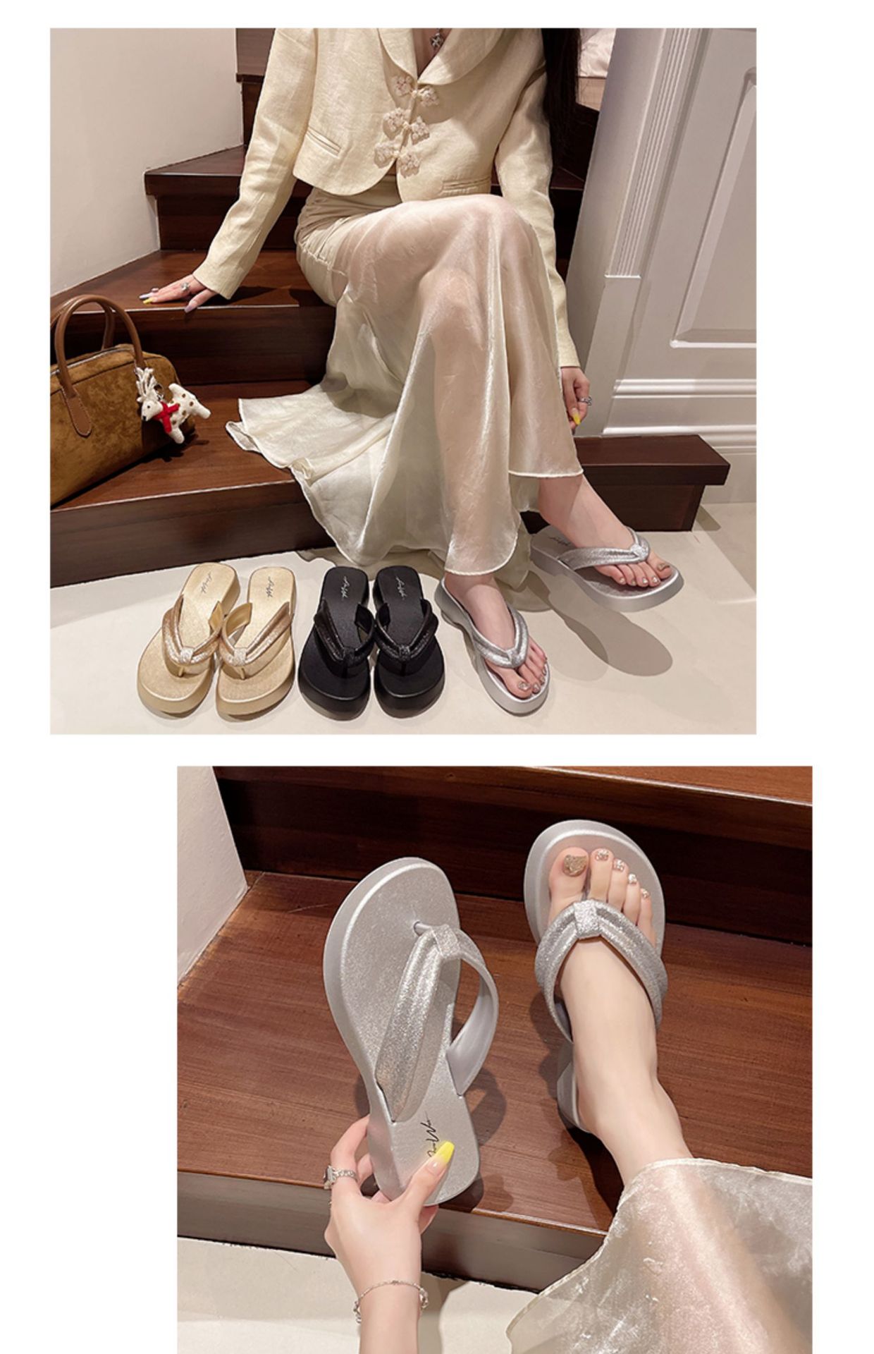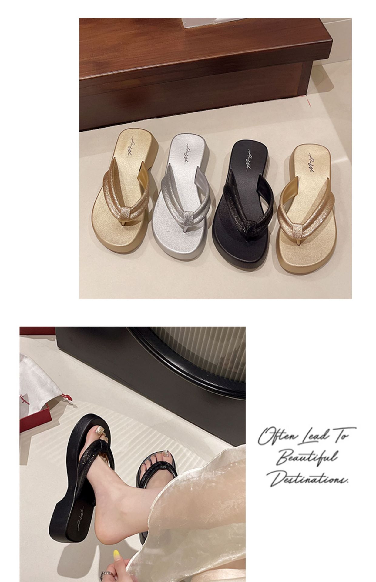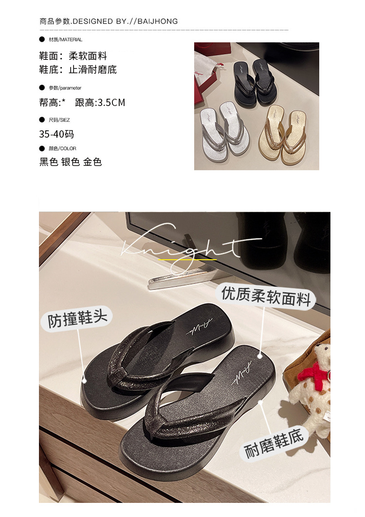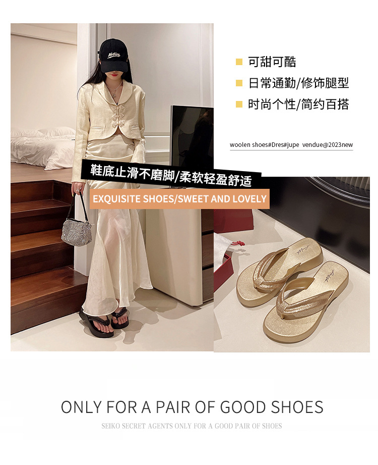 새로운 두꺼운 밑창 플립 플롭 비치 슬리퍼 고급 플래시 흡수 부드러운 레이디 샌들 높이 증가 슬리밍 편안한 미끄럼 방지스토어 가기