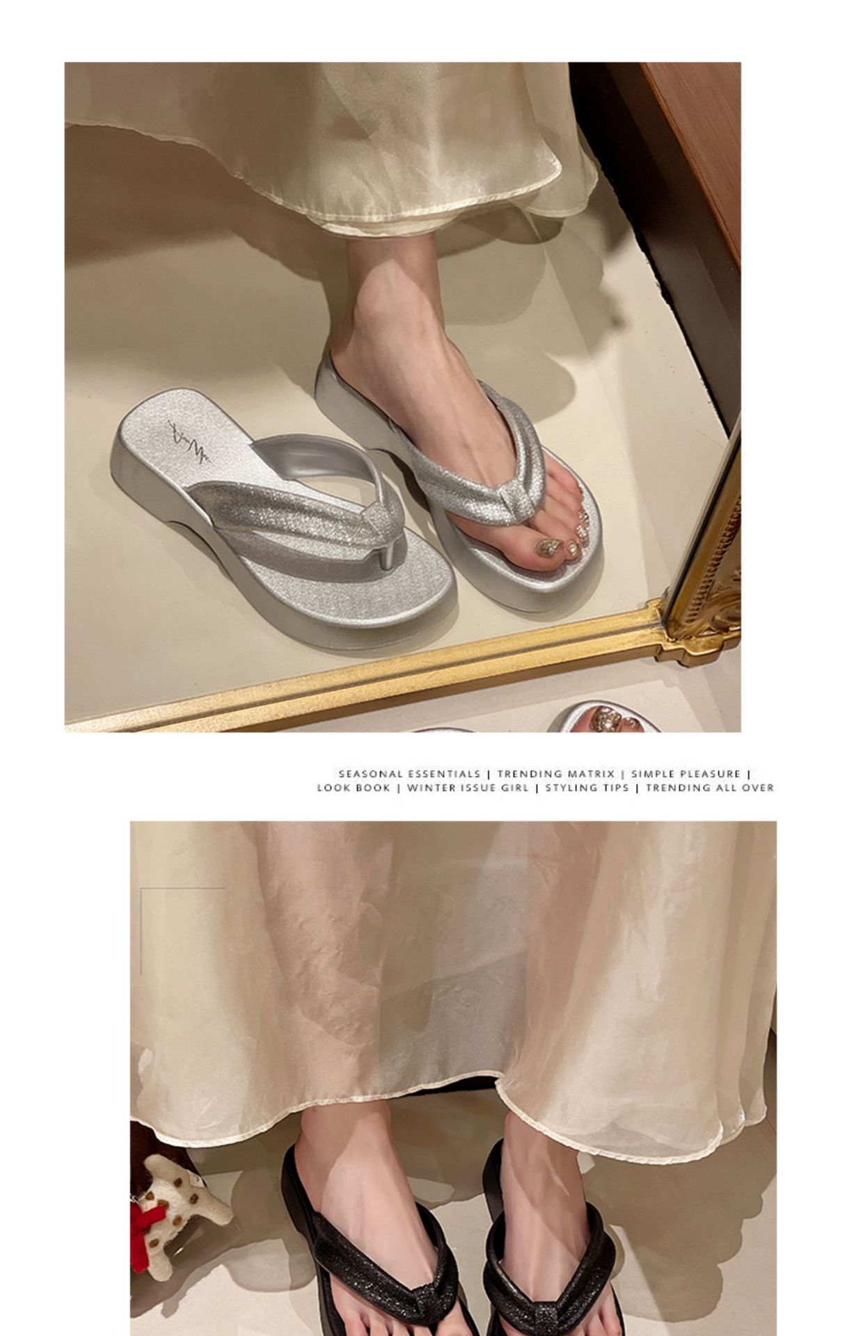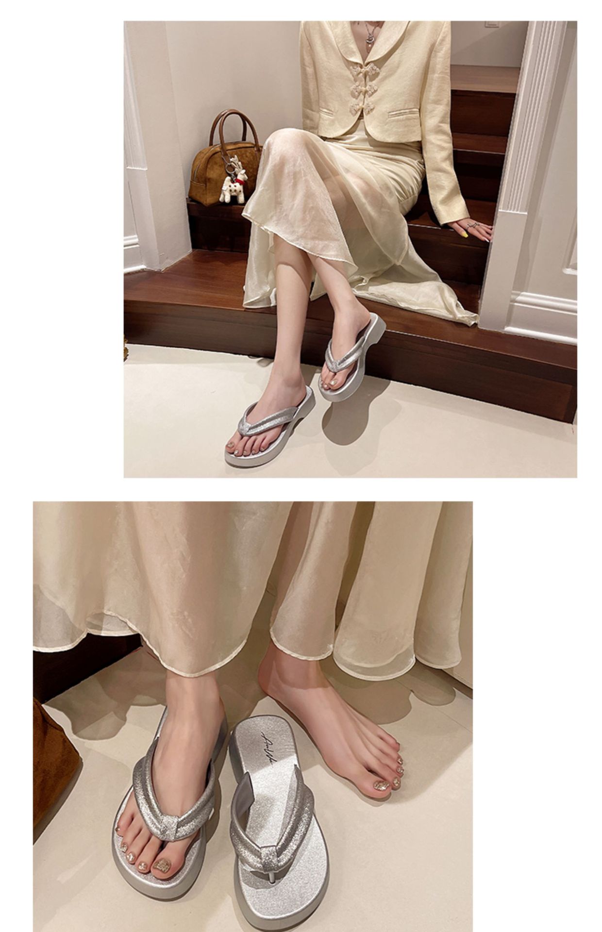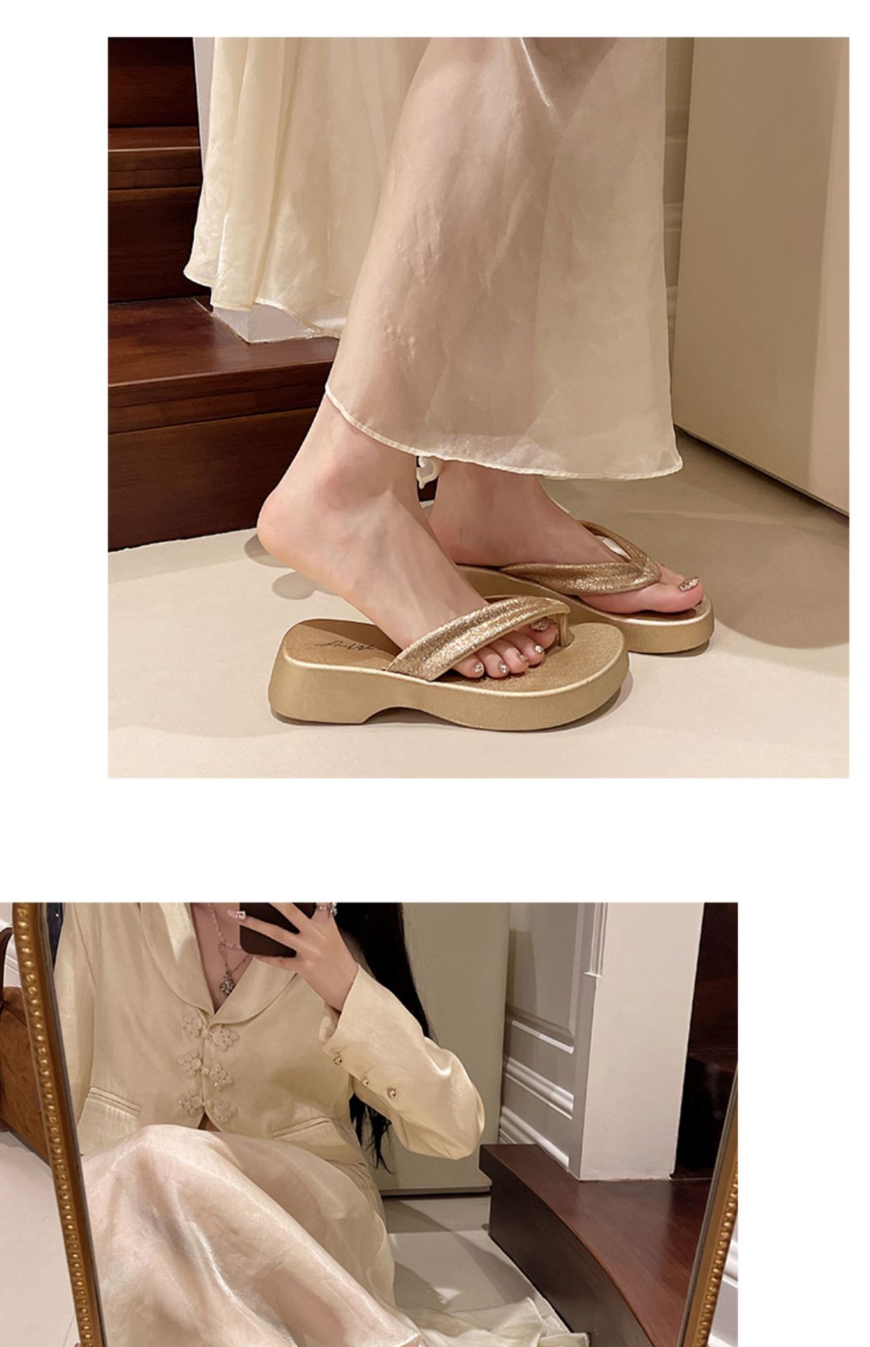 새로운 두꺼운 밑창 플립 플롭 비치 슬리퍼 고급 플래시 흡수 부드러운 레이디 샌들 높이 증가 슬리밍 편안한 미끄럼 방지스토어 가기
