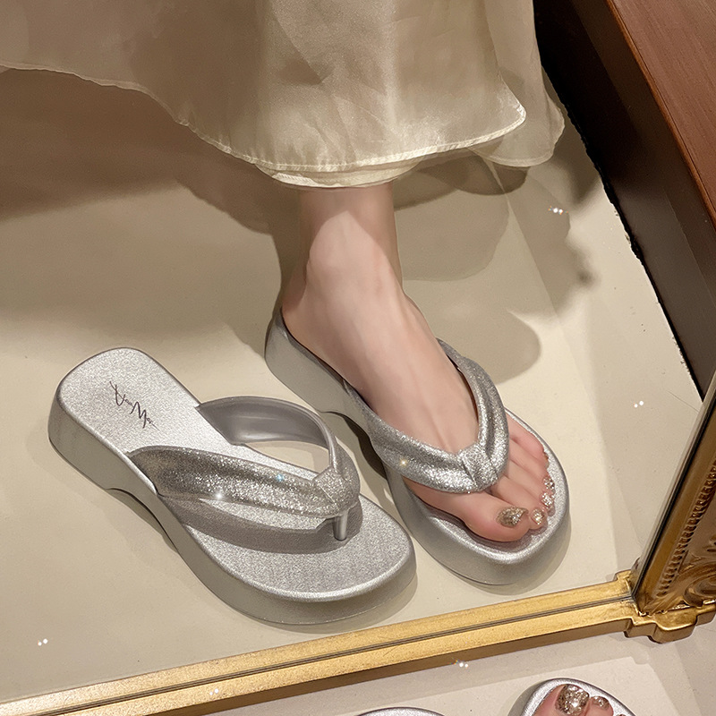 새로운 두꺼운 밑창 플립 플롭 비치 슬리퍼 고급 플래시 흡수 부드러운 레이디 샌들 높이 증가 슬리밍 편안한 미끄럼 방지
