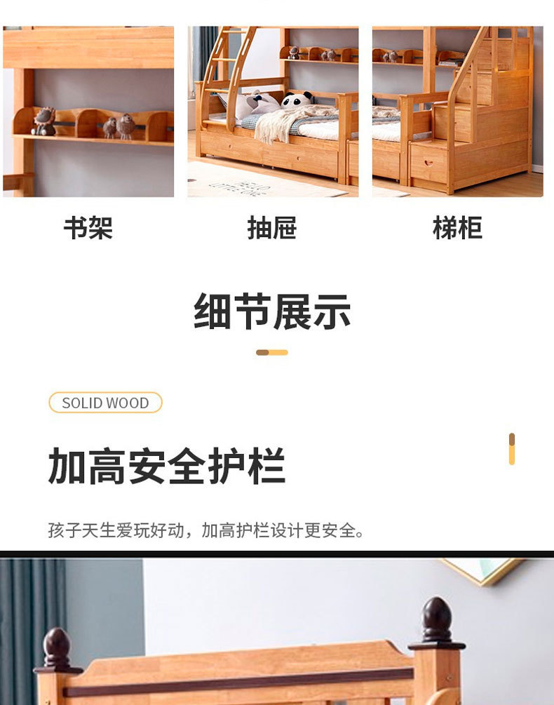모든 단단한 나무 어머니 침대 어린이 침대 높고 낮은 침대 작은 아파트 소년 소녀 다기능 벙크 침대 상단 및 하단 이층 침대 선반 침대스토어 가기