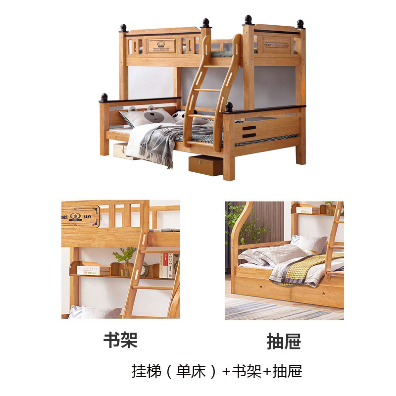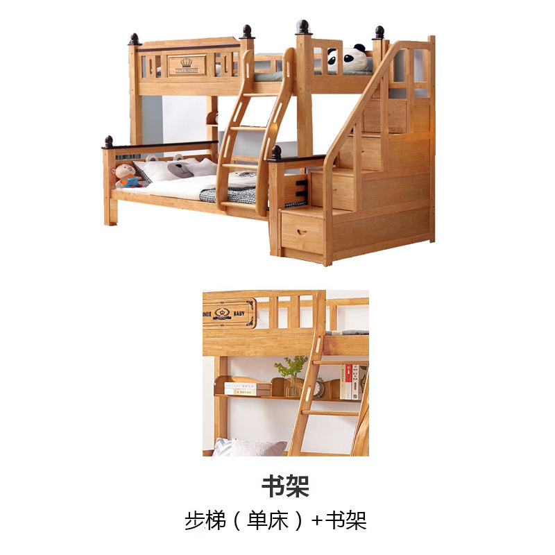 모든 단단한 나무 어머니 침대 어린이 침대 높고 낮은 침대 작은 아파트 소년 소녀 다기능 벙크 침대 상단 및 하단 이층 침대 선반 침대