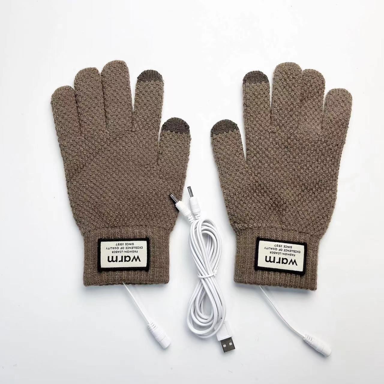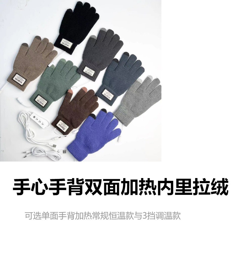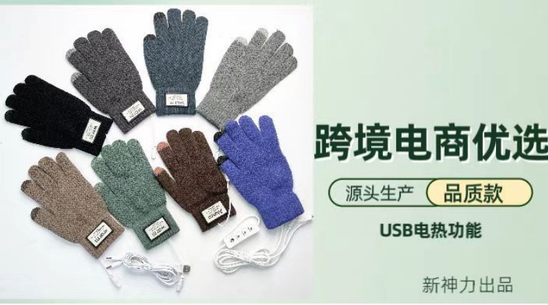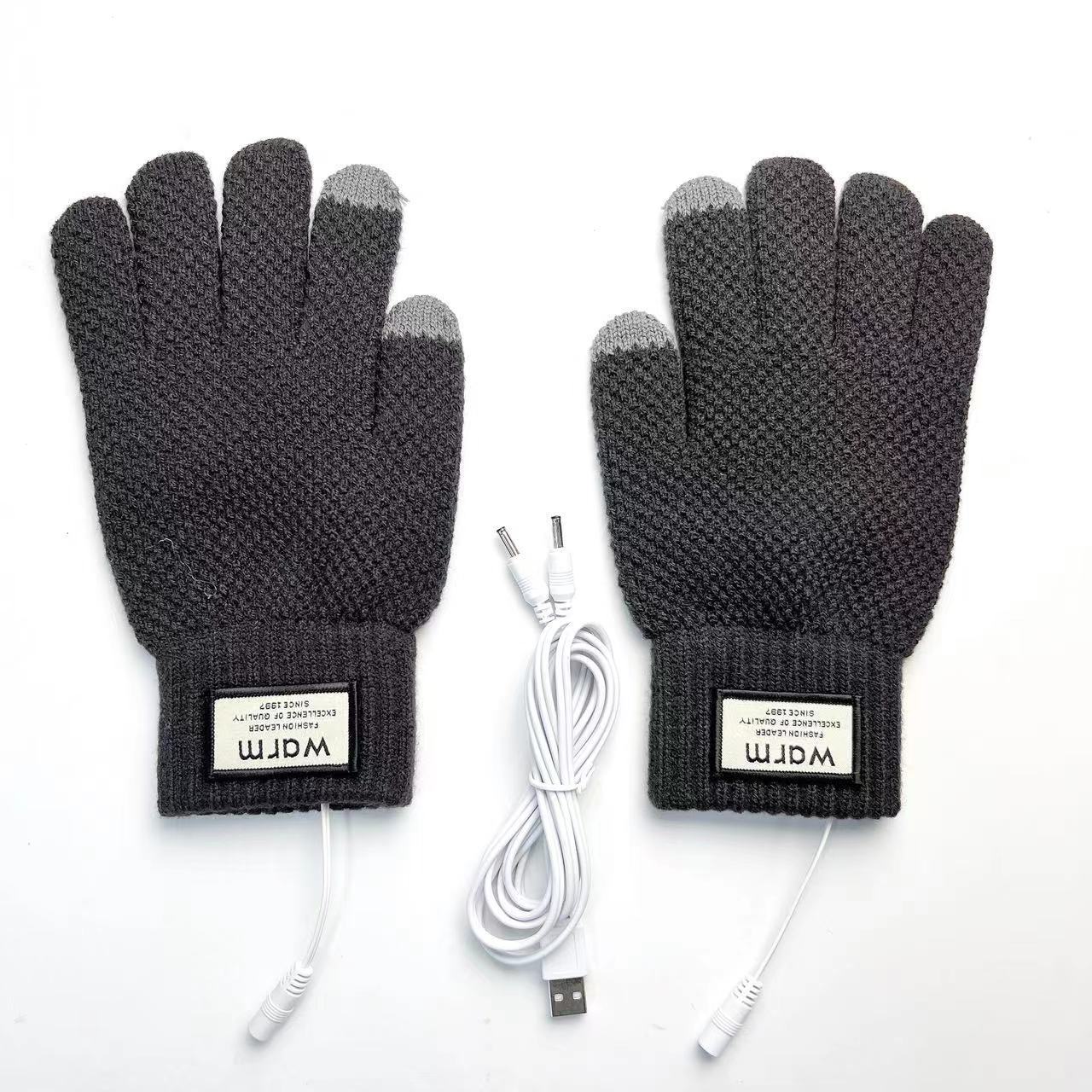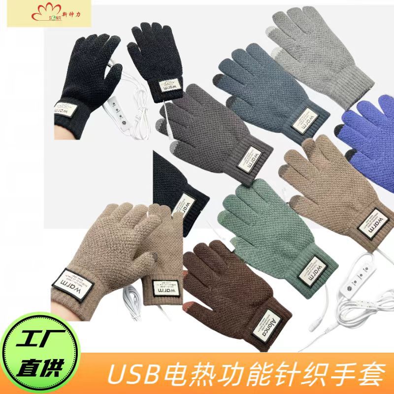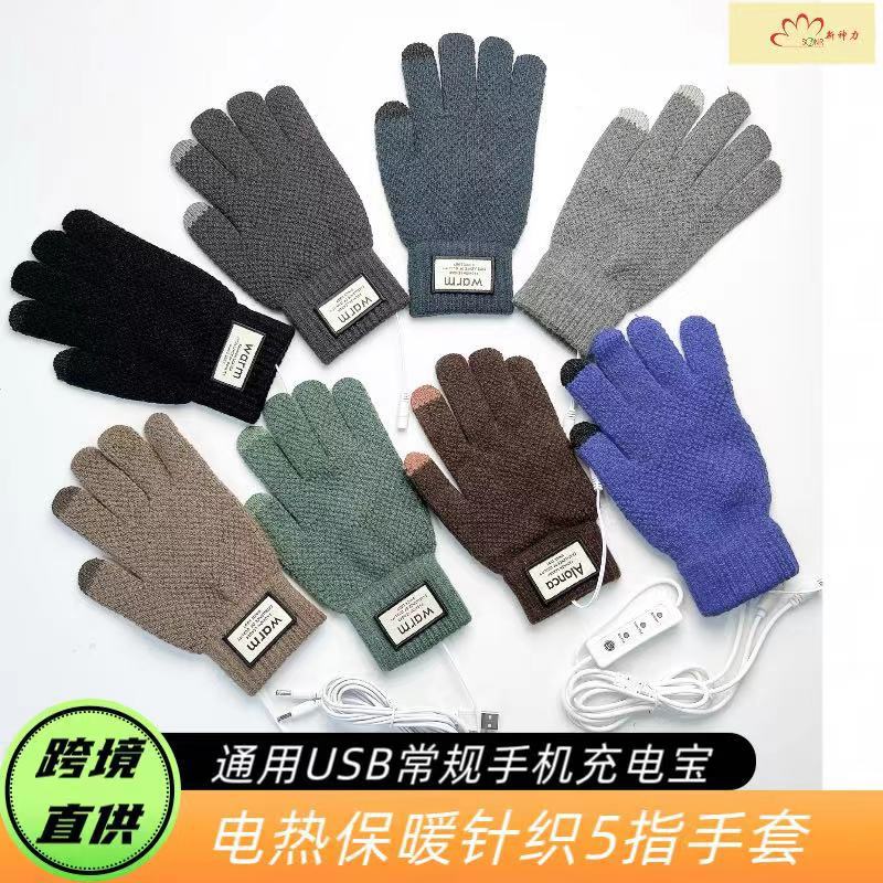 국경 USB 니트 전기 난방 장갑 터치 스크린 전기 난방 남자 5 손가락 야외 승마 따뜻한 소스 제조 업체스토어 가기
