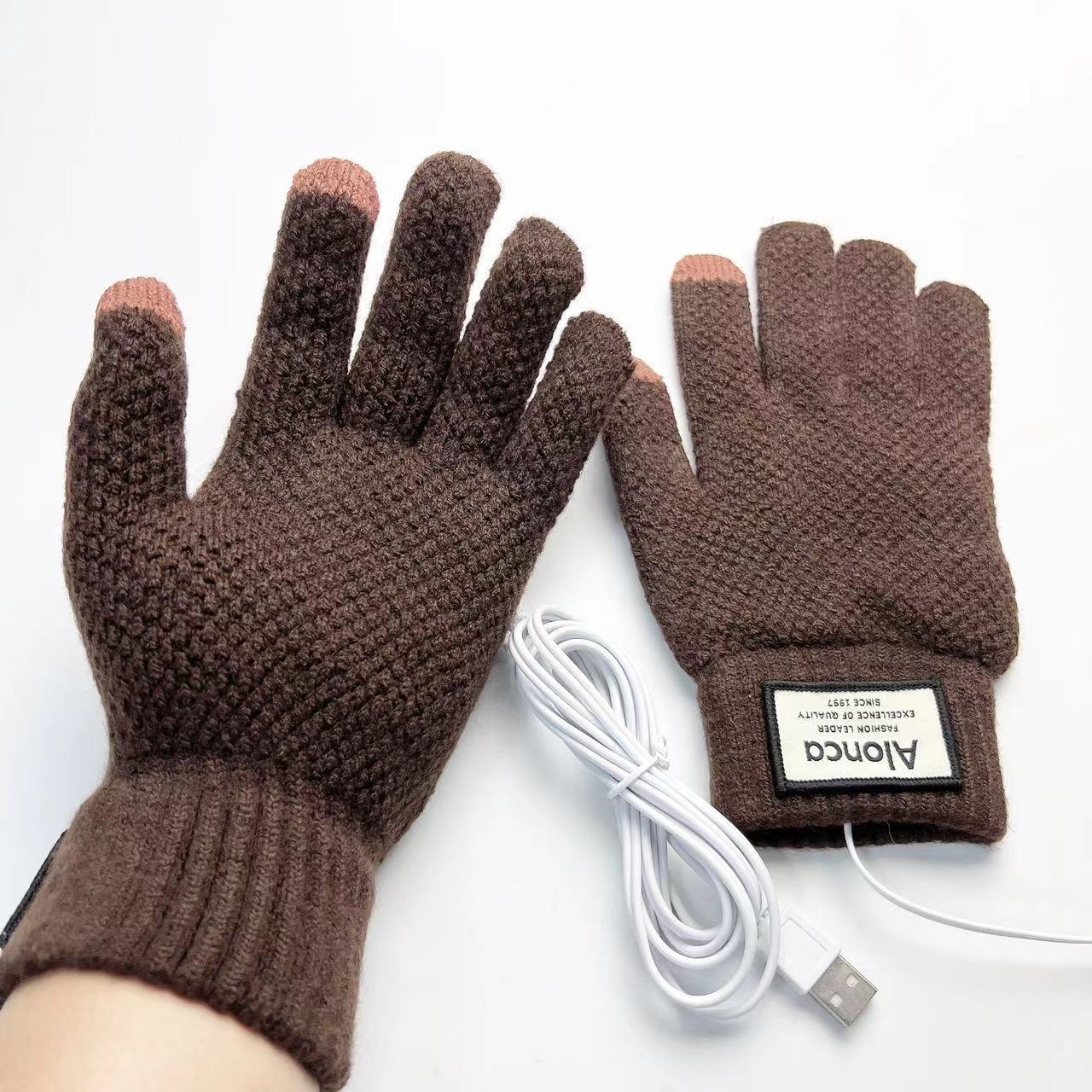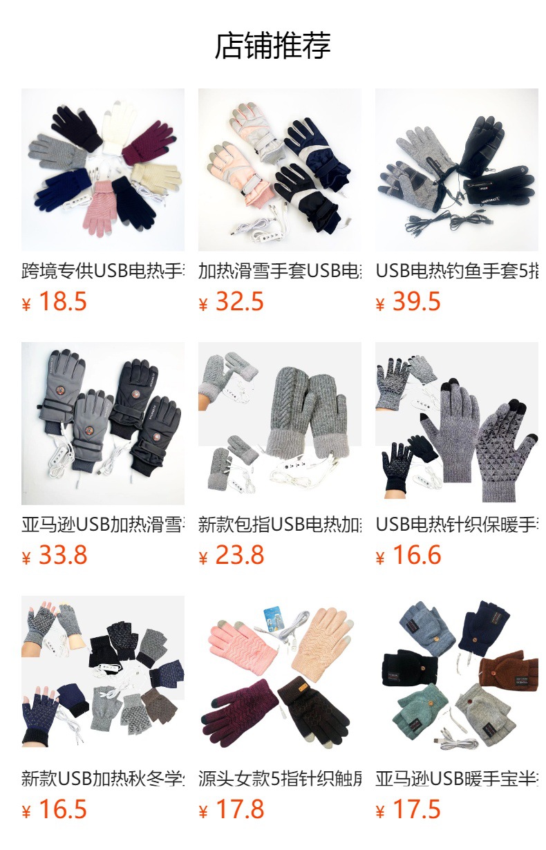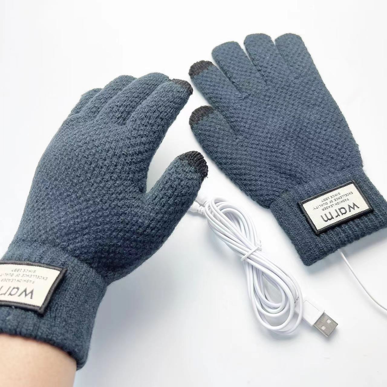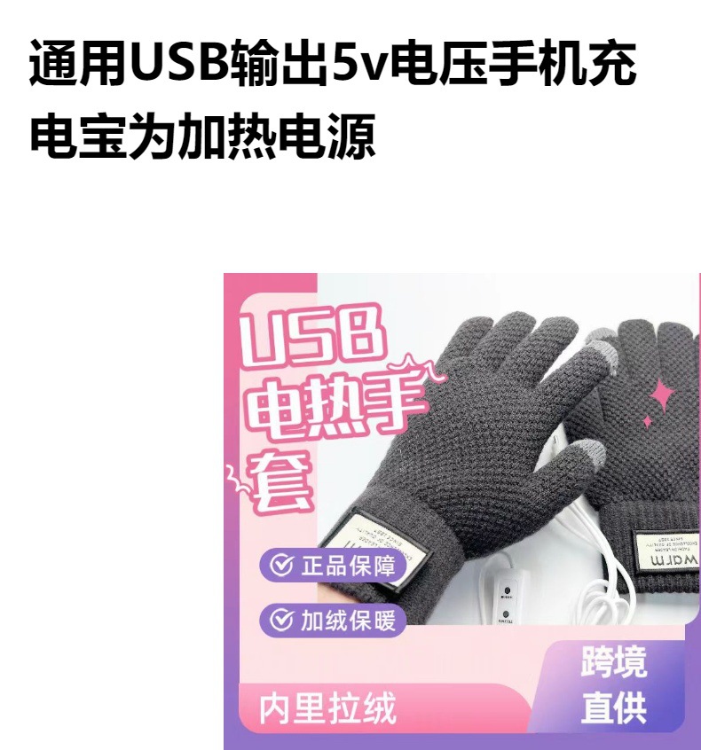 국경 USB 니트 전기 난방 장갑 터치 스크린 전기 난방 남자 5 손가락 야외 승마 따뜻한 소스 제조 업체스토어 가기