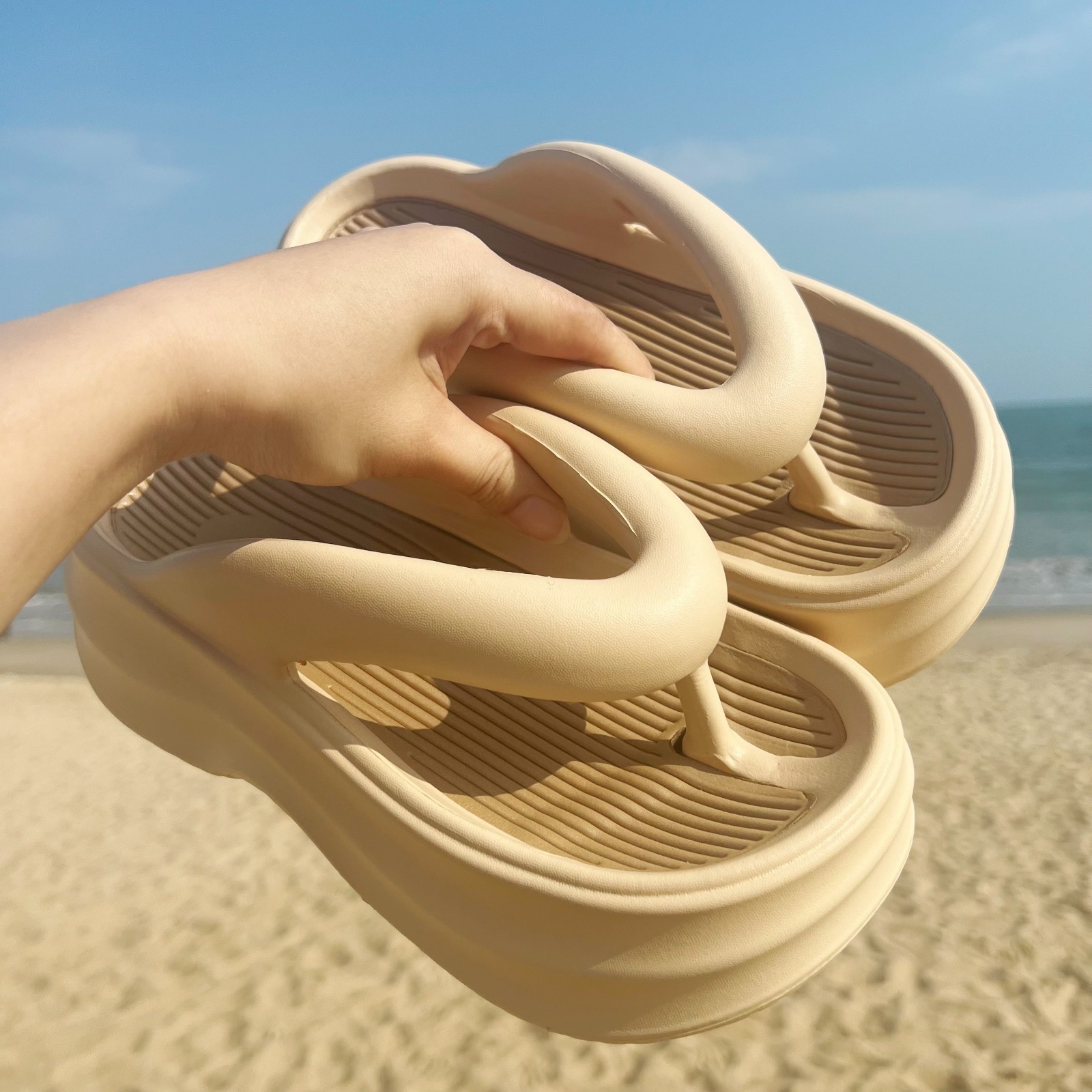 두꺼운 바닥 플립-플롭 여성 여름 착용 새로운 패션 인터넷 인기있는 발 슬리퍼 해변 휴가 플립-플롭 여성